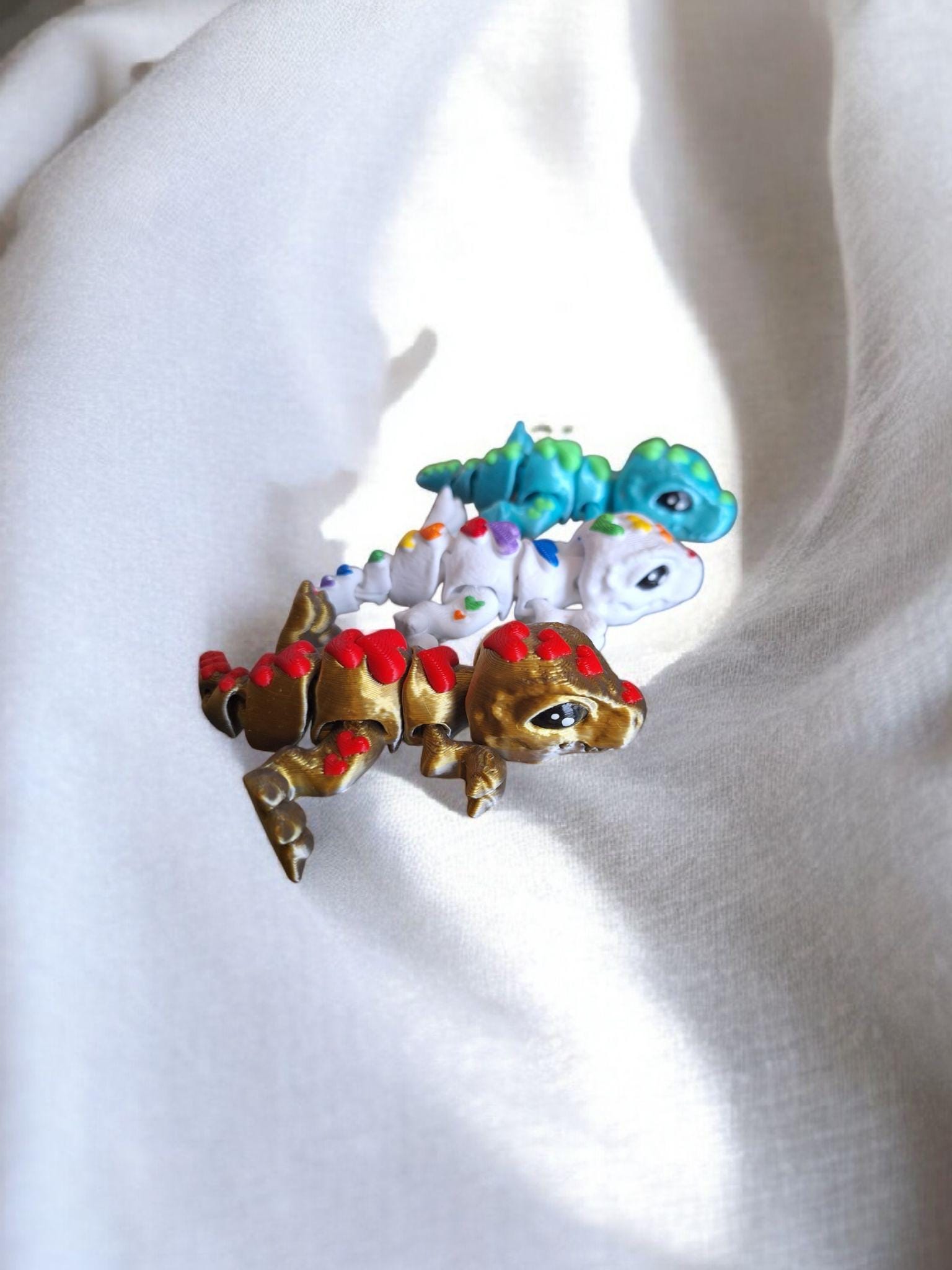 3D articulated assorted color heart tiny t-rex / 3d printed t rex dinosaur dino animals / heart love dinosaur knick knack Fidget figurines