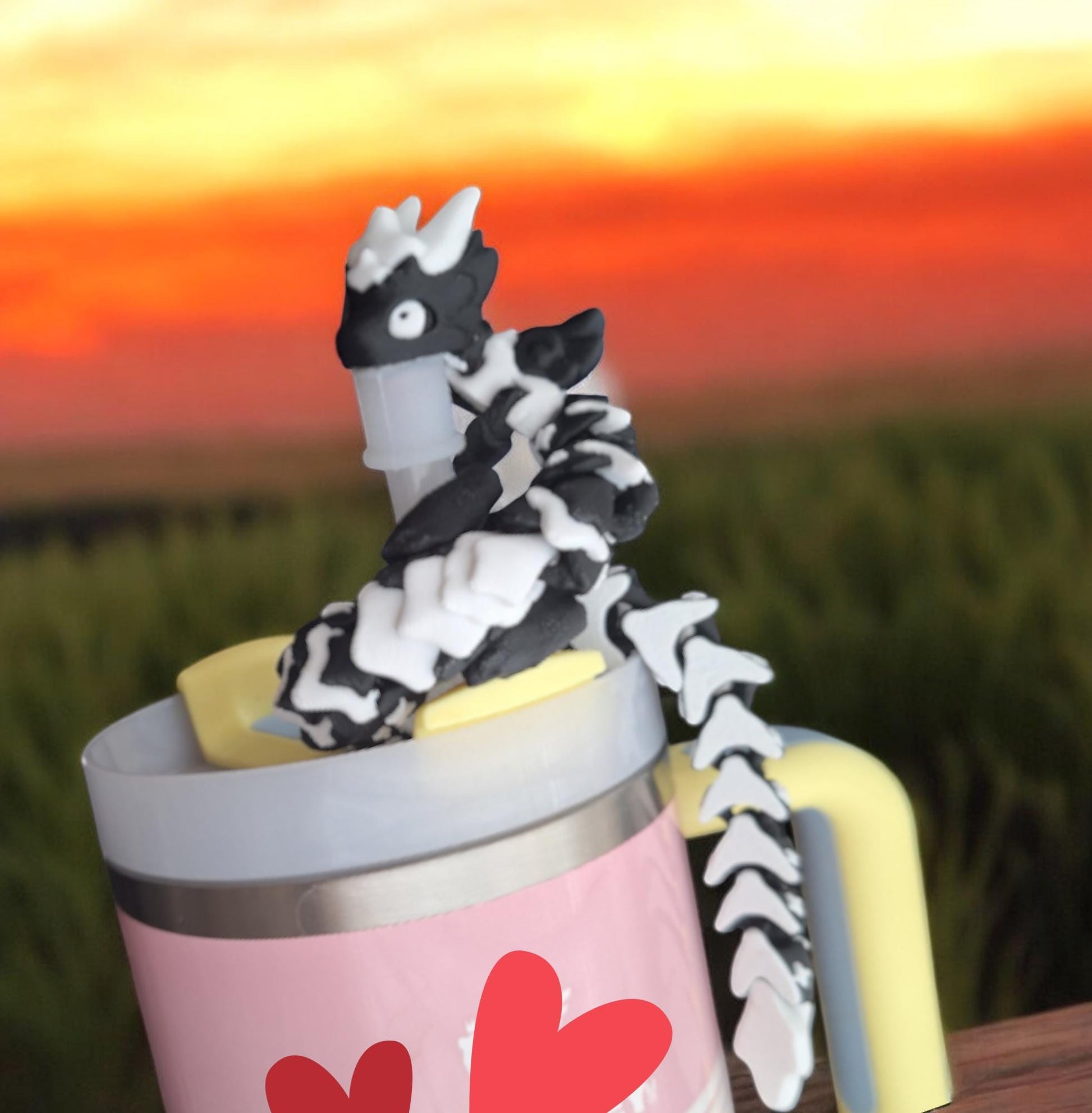 3D articulated atria colorful dragon straw cap / 3d printed atria dragon animals / dragon straw topper cover Fidget figurines