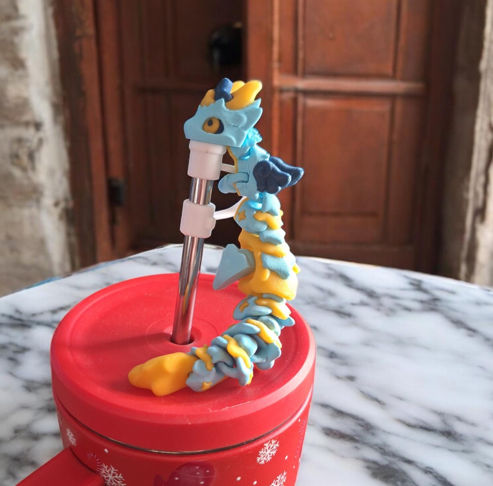 3D articulated baby atria colorful dragon straw cap / 3d printed baby atria dragon animals / dragon straw topper cover Fidget figurines