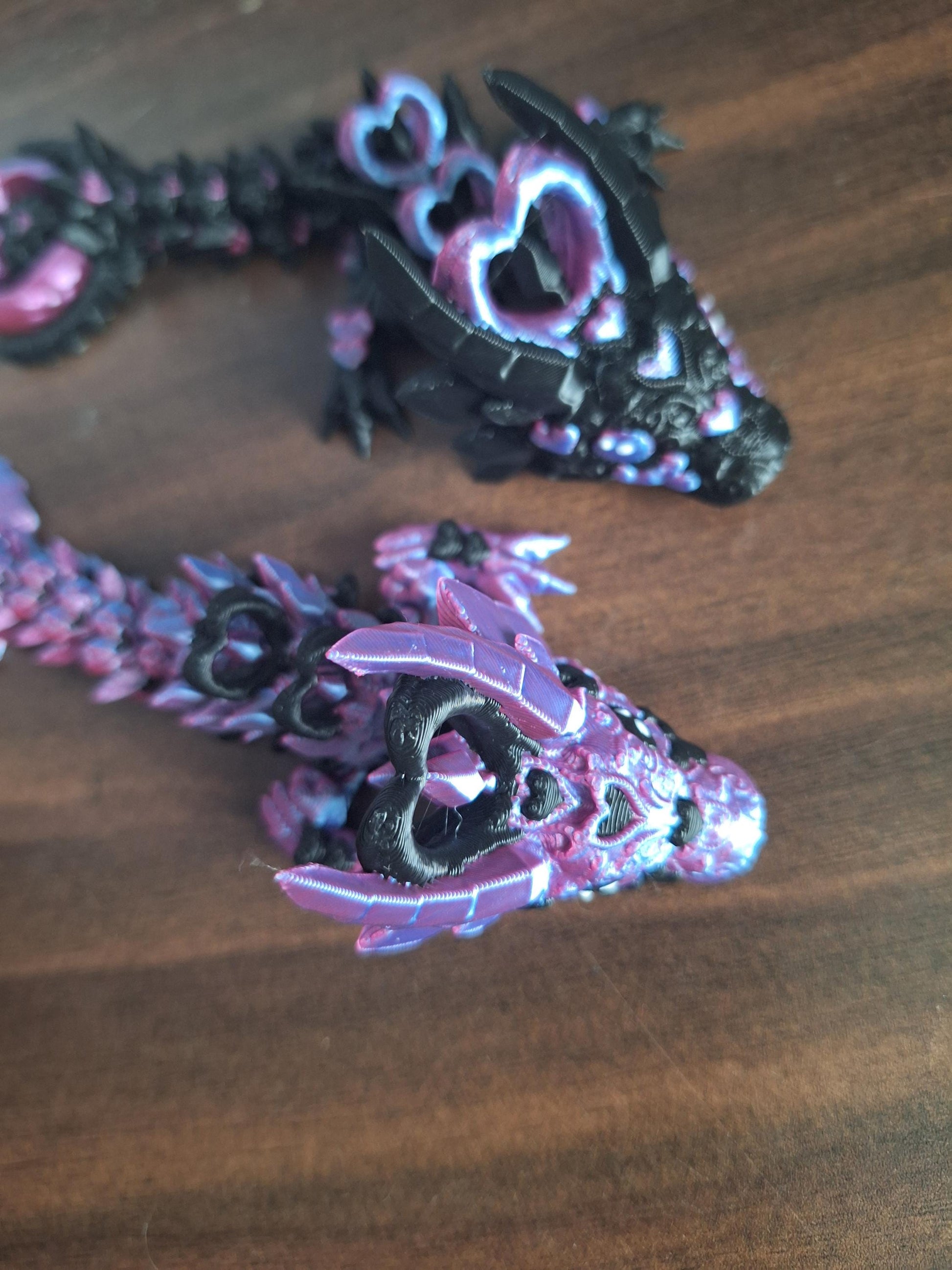 3D articulated black blue dark heart dragon straw cap / 3d printed dragon animals / darkheart dragon straw topper cover Fidget figurines