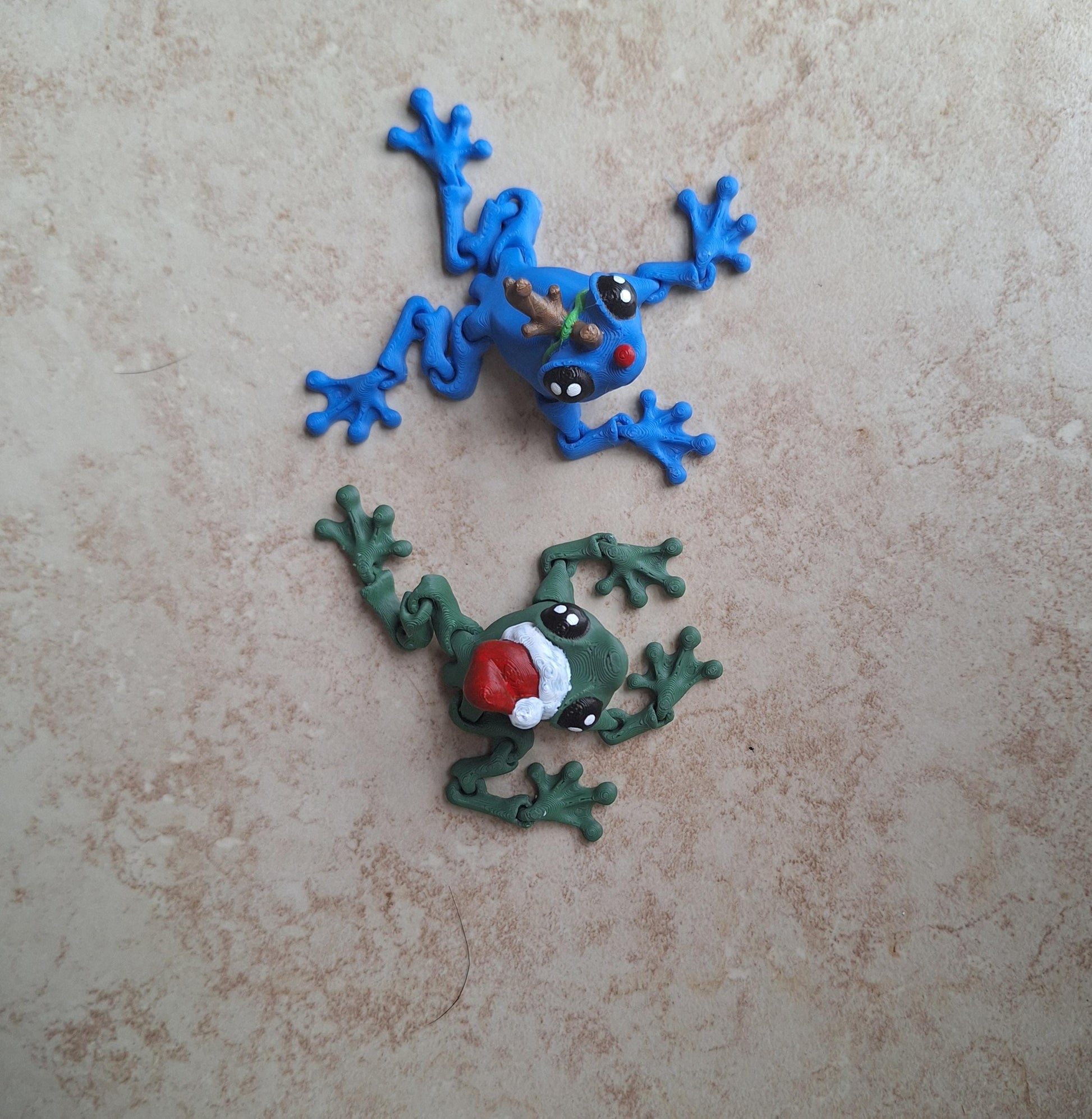 3D articulated blue green festive frogs / 3d printed holiday christmas animals / reindeer santa frog knick knack Fidget figurines