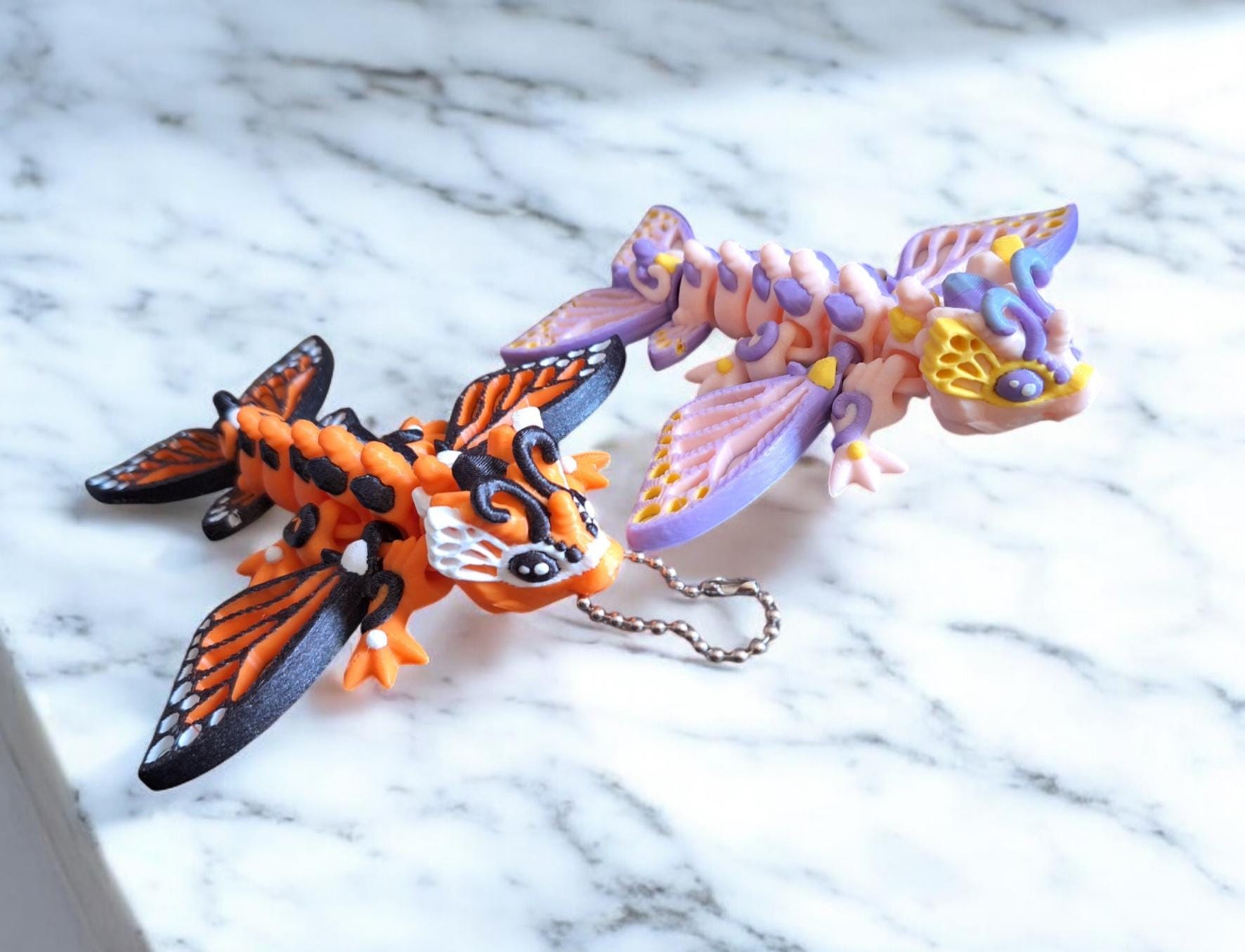 3D articulated butterfly wyvern dragon keychain / 3d printed dragon animals / wyvern dragon knick knack Fidget figurines key chain