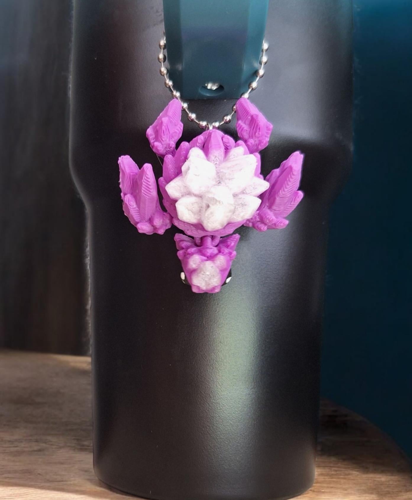 3D articulated clear purple gemstone turtle tumbler handle charm / 3d printed turtle animal gemstone crystal turtle tumbler charm Fidget