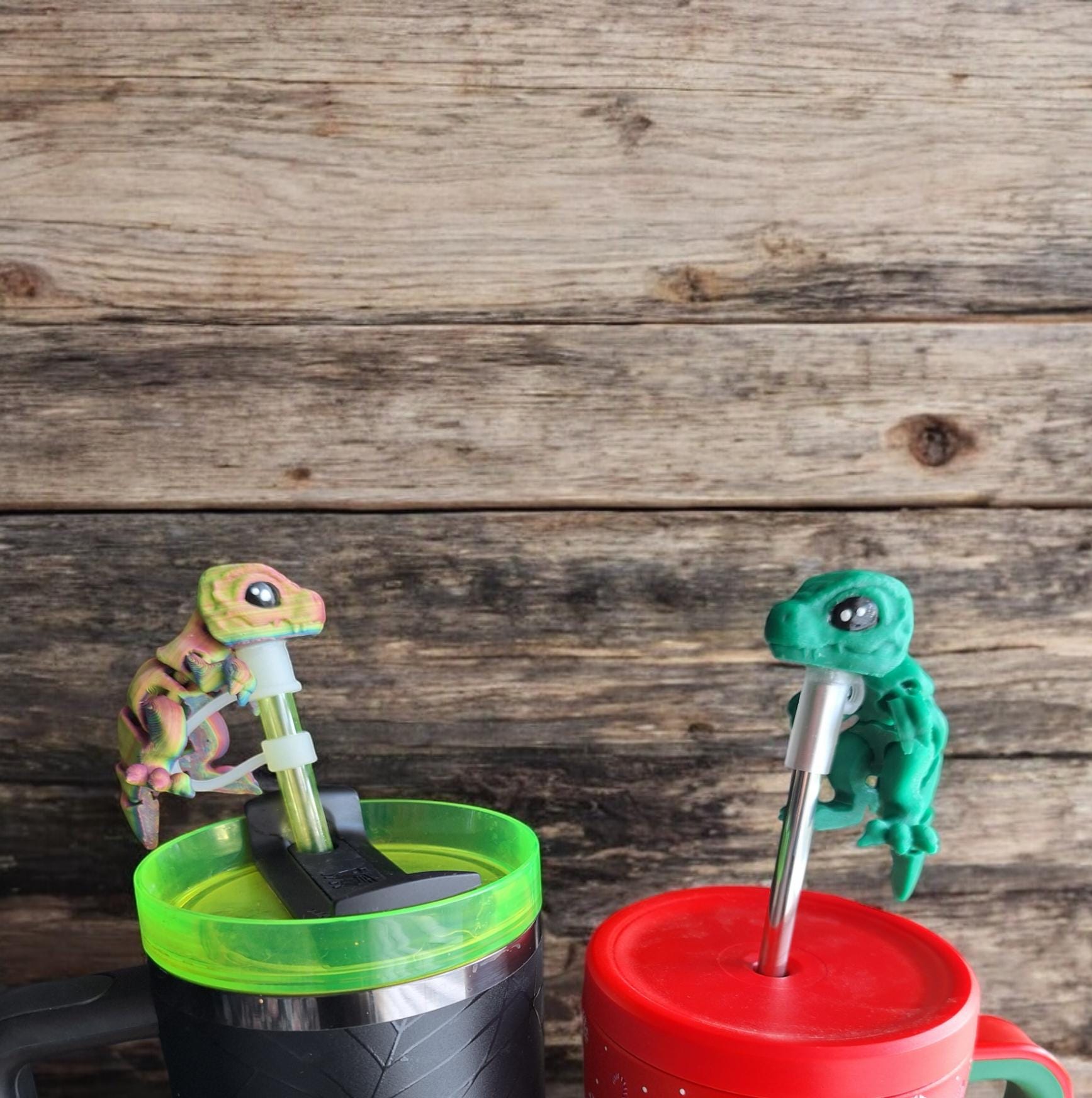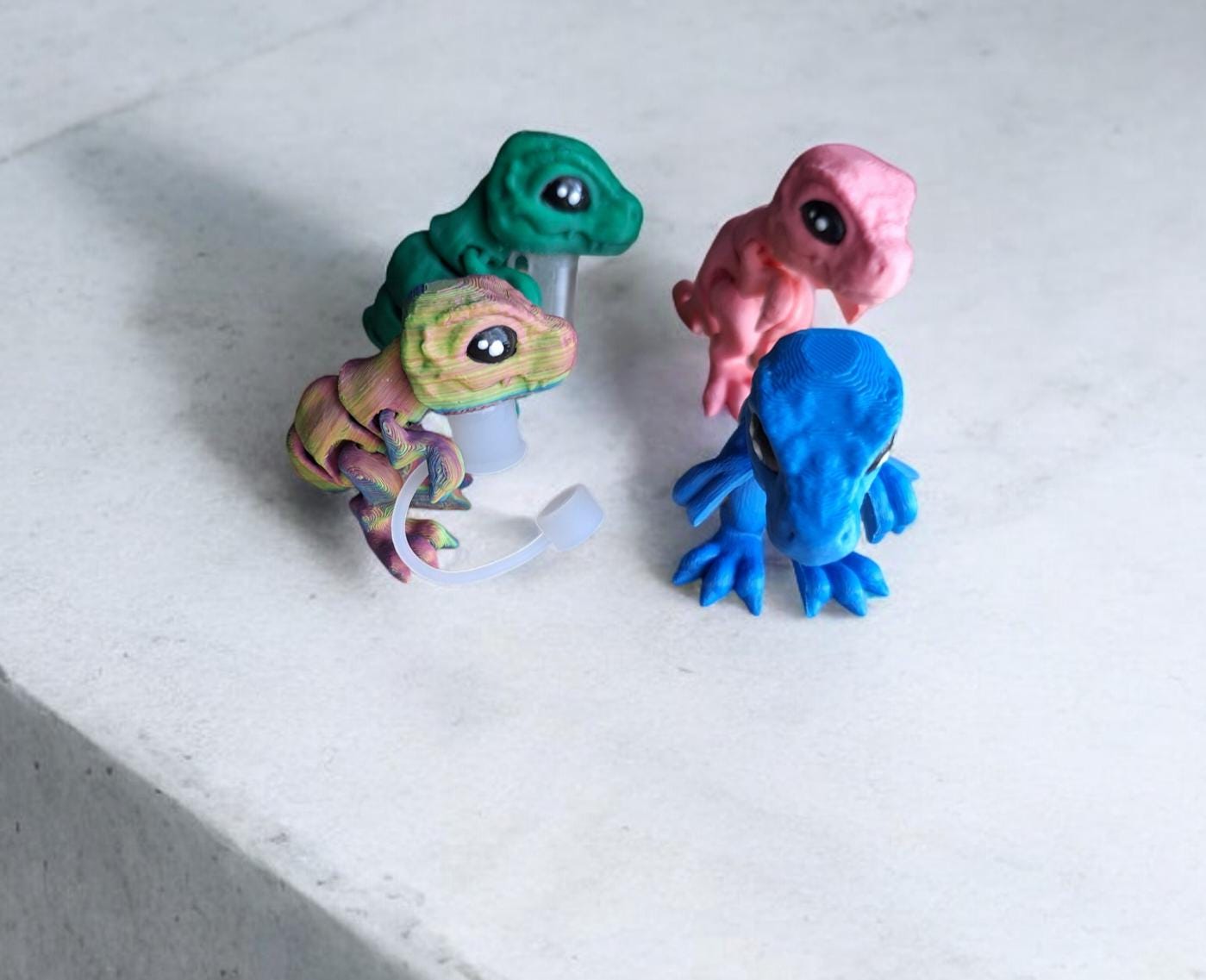 3D articulated cute assorted tiny t-rex straw cap / 3d printed t rex animals / trex dinosaur dino topper cover Fidget figurines