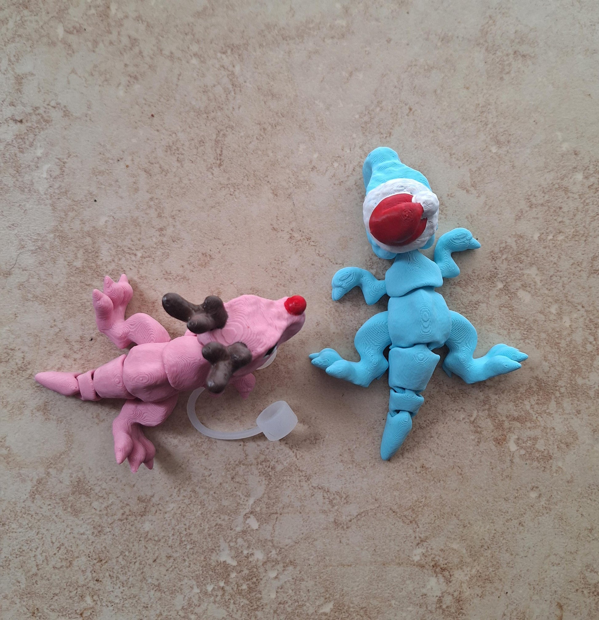 3D articulated cute festive santa tiny t-rex straw cap / 3d printed t rex animals / trex dinosaur dino topper cover Fidget figurines