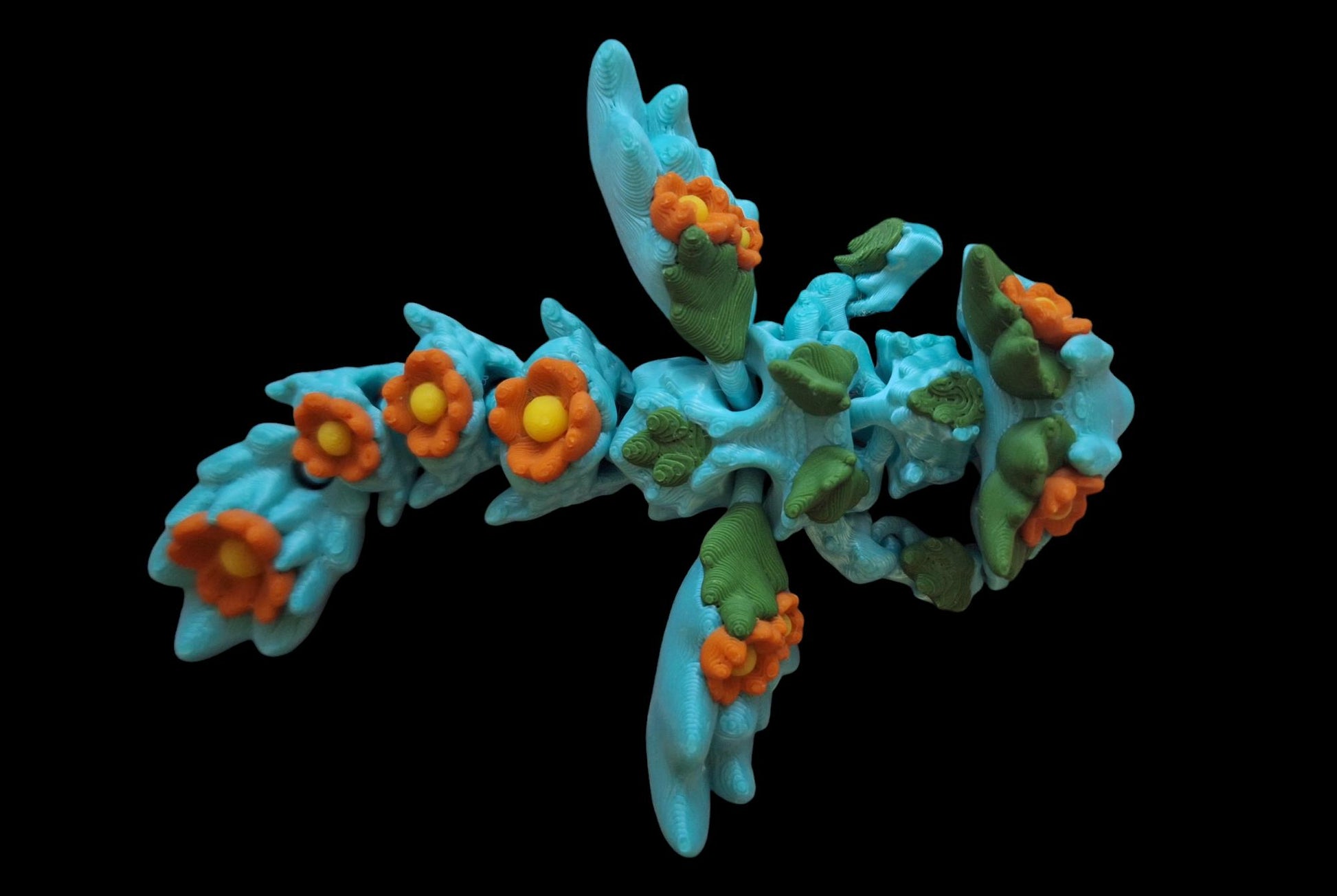 3D articulated floral axolotl dragon kosha / dragon straw cap / axolotl straw topper cover / 3d printed tumbler accessories