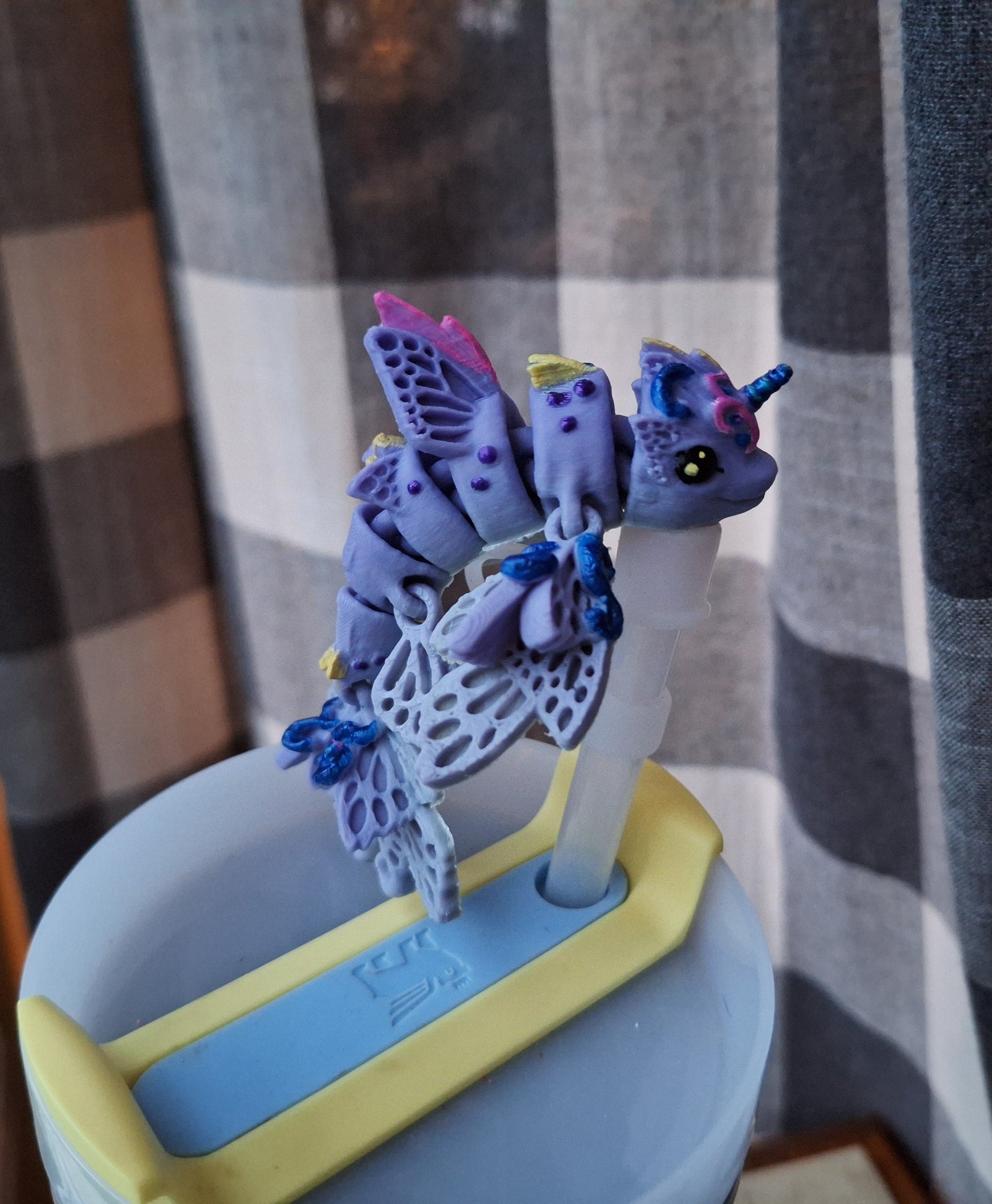 3d printed straw topper flutterphin dragon - 3d printed from PLA filament -