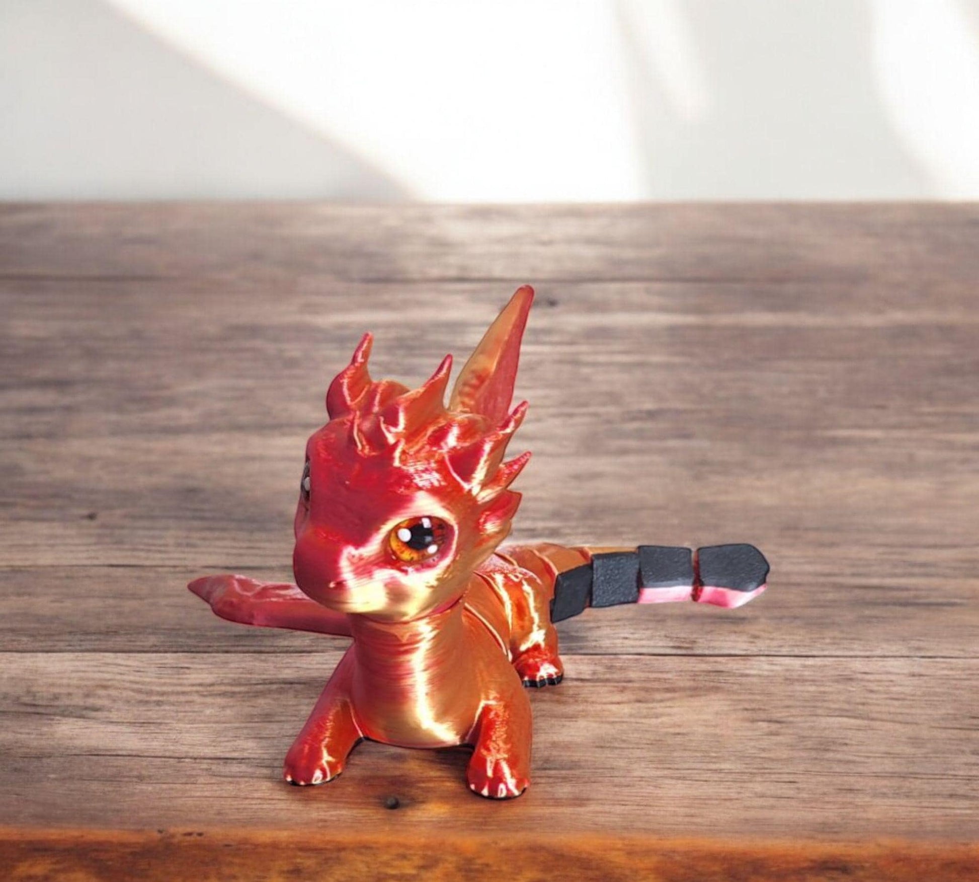 3D articulated printed and painted orange red teen fire dragon / 3d printed baby dragon / 3d printed desk pet figurine fidget Serev3d design