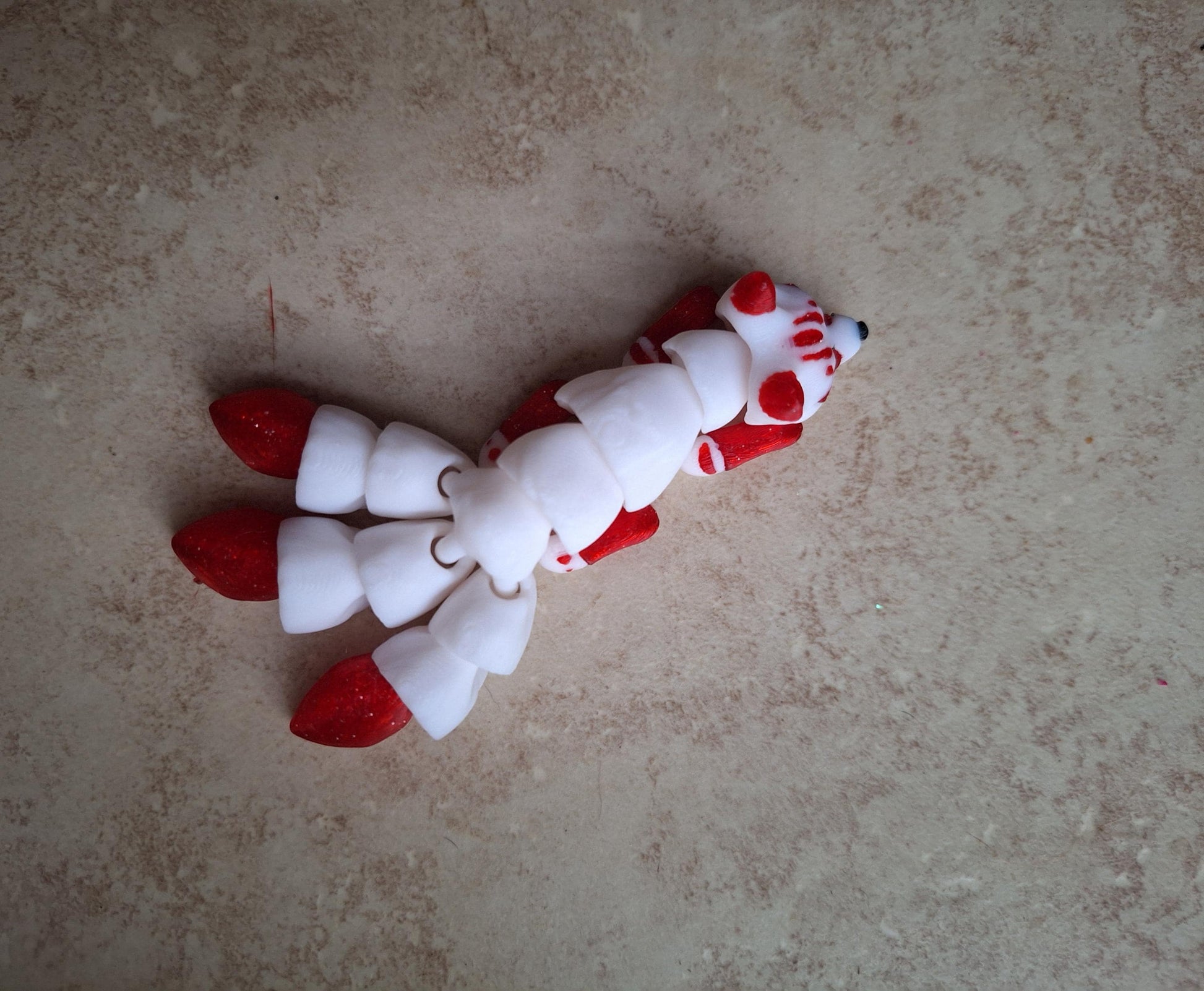 3D articulated red blue baby kitsune fox straw topper cap / 3d printed kitsune / 3d printed animals figurine knick knack Fidget