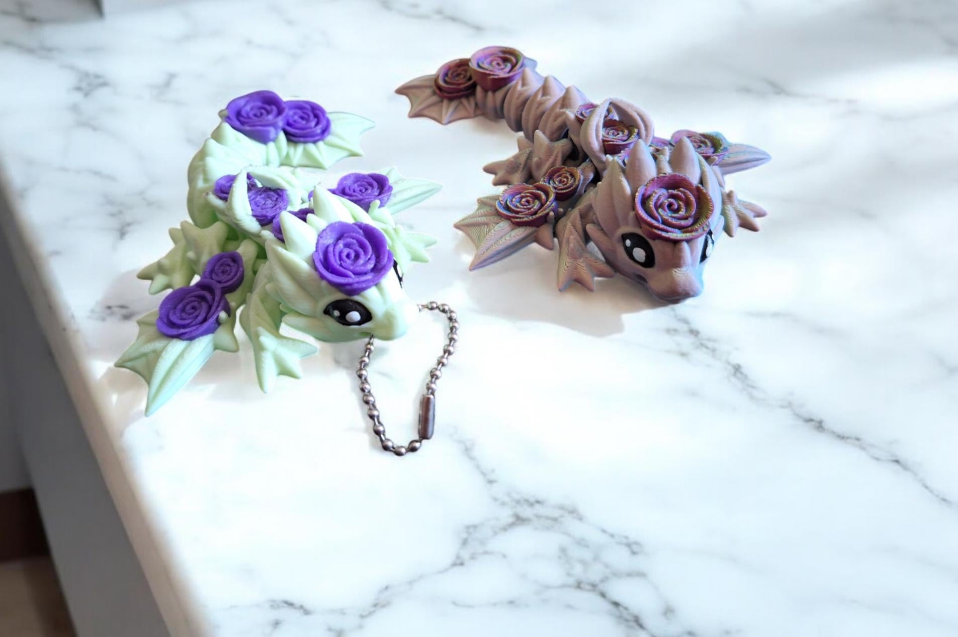3D articulated rose wyvern dragon keychain / 3d printed dragon animals / wyvern dragon knick knack Fidget figurines key chain