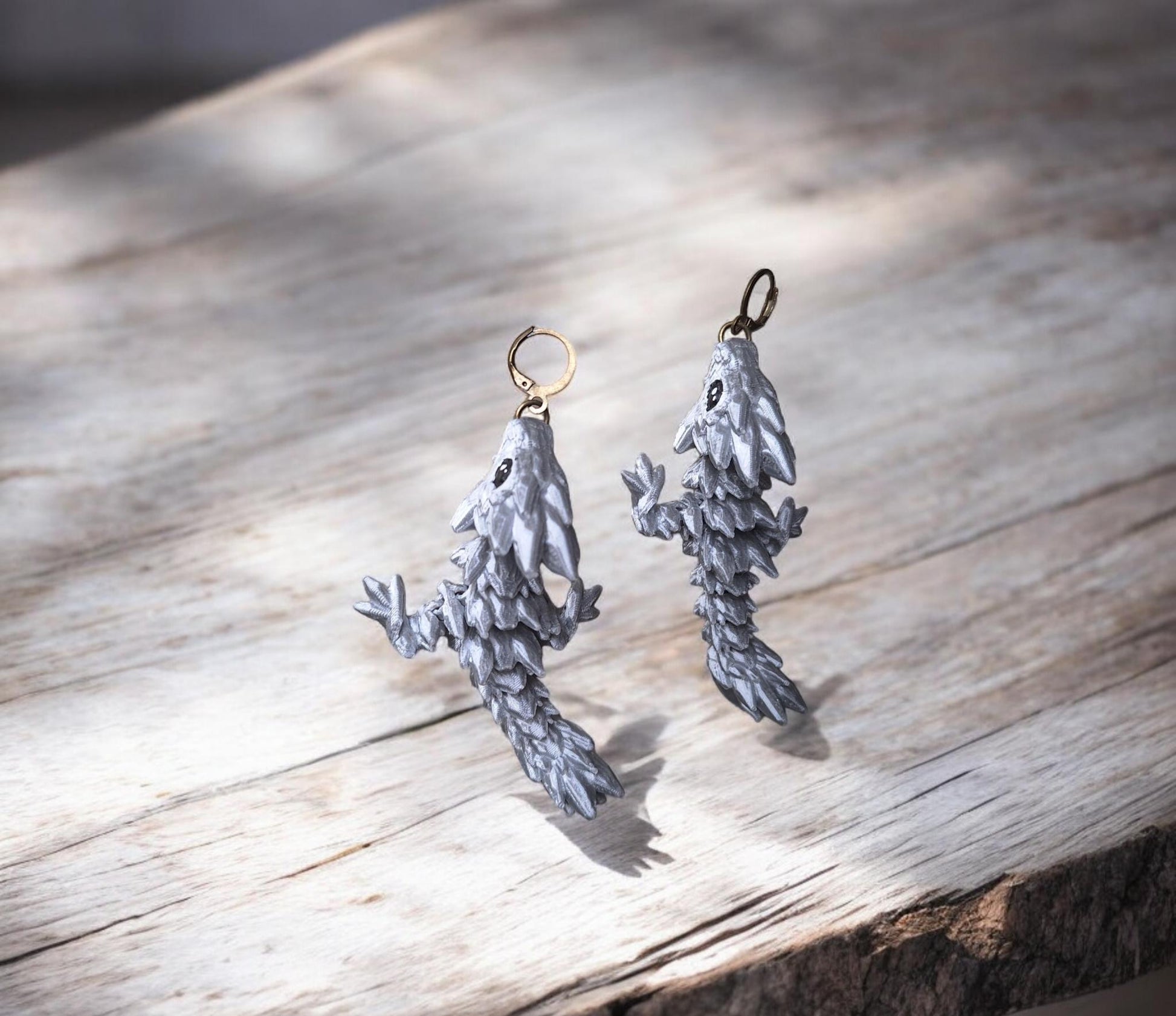 3D articulated silver gemstone tadling dragon earrings / 3d printed earrings / dragon earrings / articulated 3d dragon jewelry