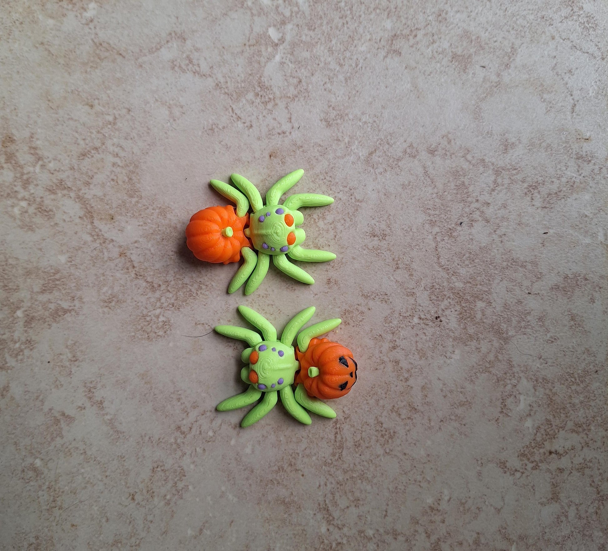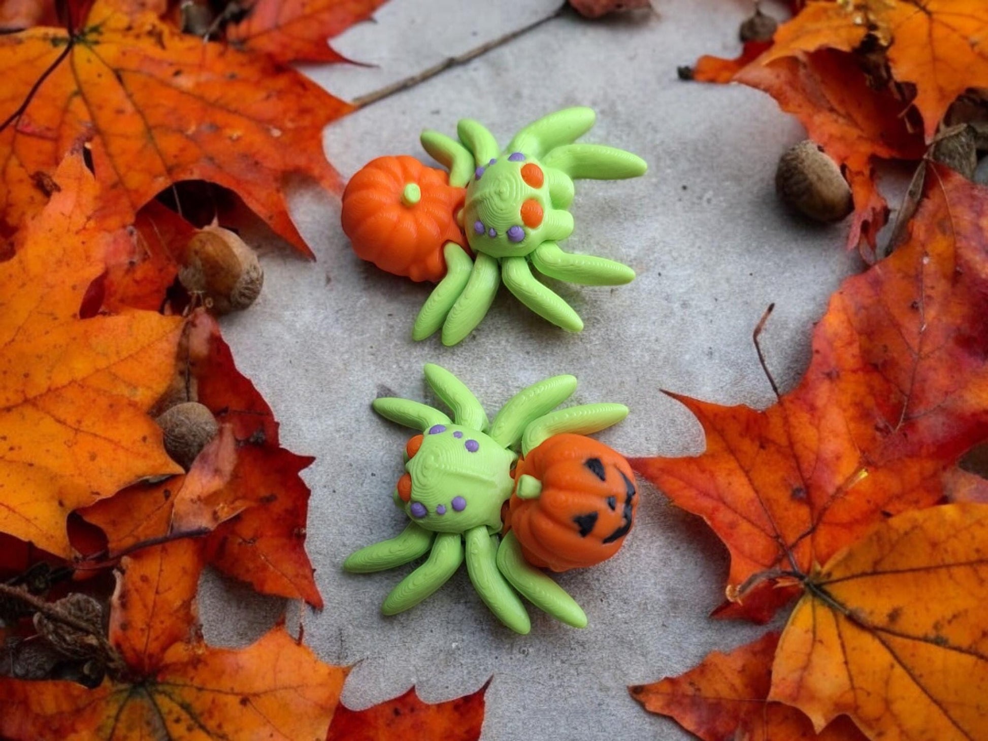 3D kawaii articulated small pumpkin spiders / 3d printed spider insect animals / holiday halloween spider knick knack Fidget figurines
