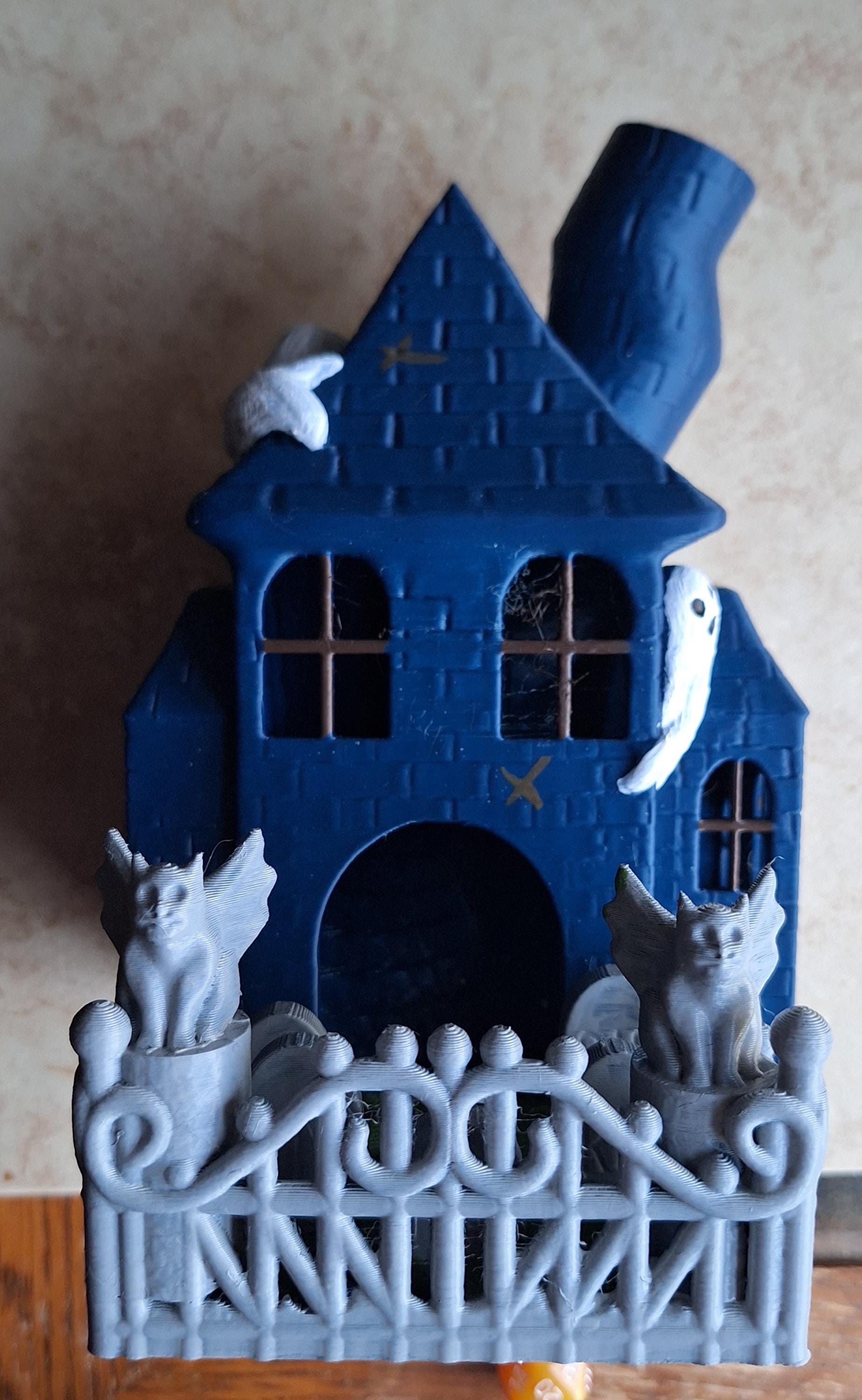 3D printed and painted dark blue haunted house dice tower / 3d spooky halloween dice tower / 3d printed d20 dice tower roller