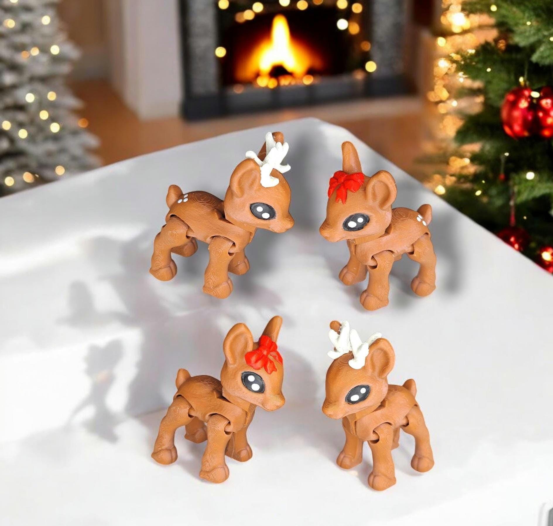 3d printed flexi holiday reindeer animal / 3d printed christmas animals / deer knick knack Fidget figurines