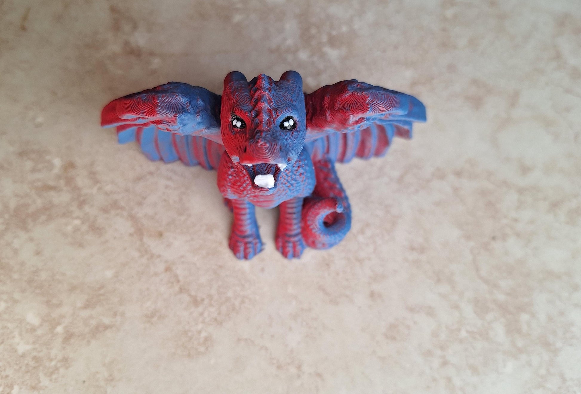 3D printed red blue two tone dragon cord holder / 3d dragon cord organizer / 3d printed dragon knick knack