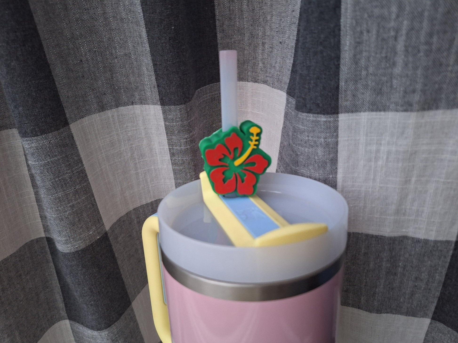 3D printed red hibiscus flower straw buddy charm tumbler accessories / tumbler charm straw buddy / beach tropical flower straw topper charm