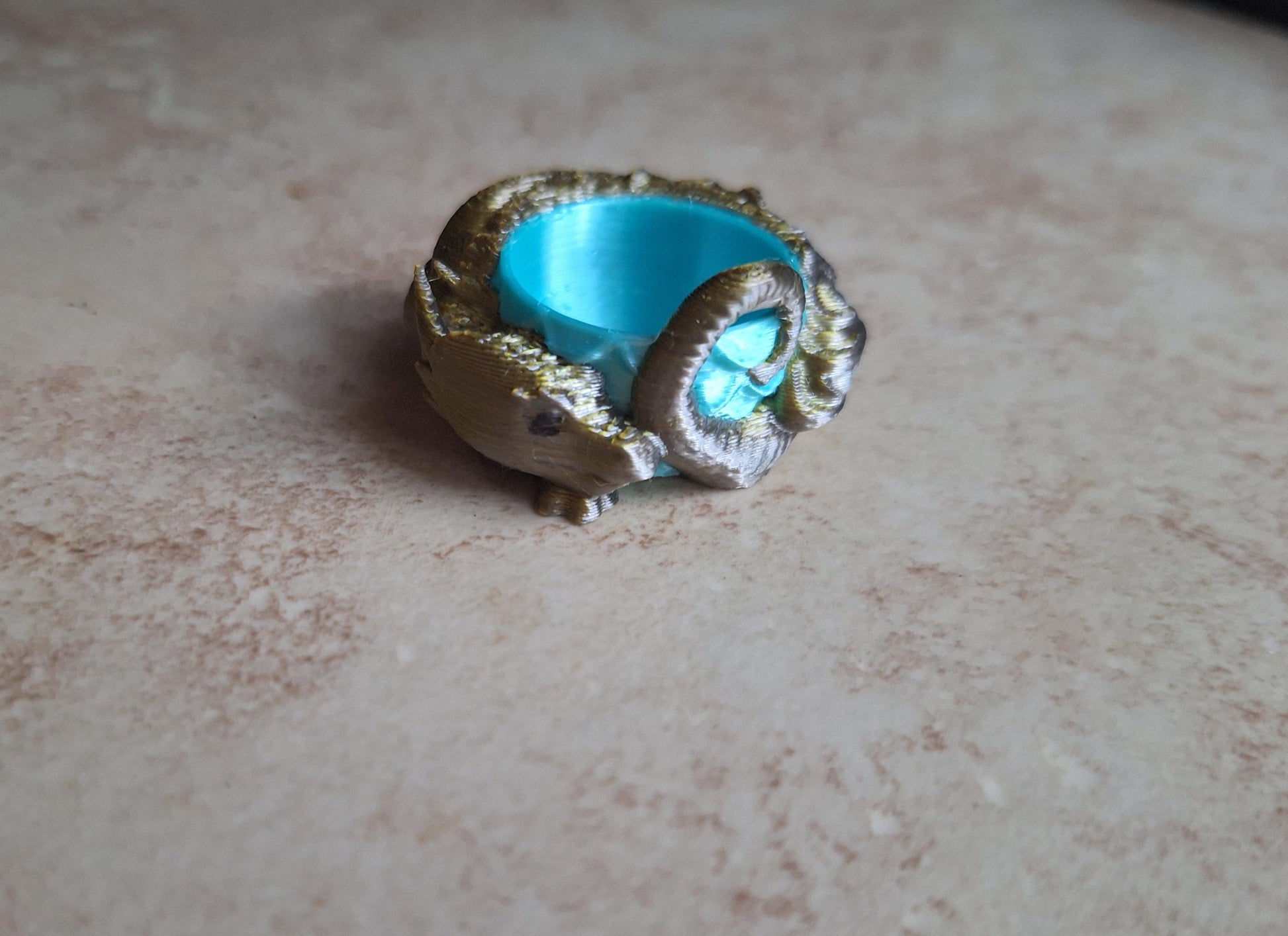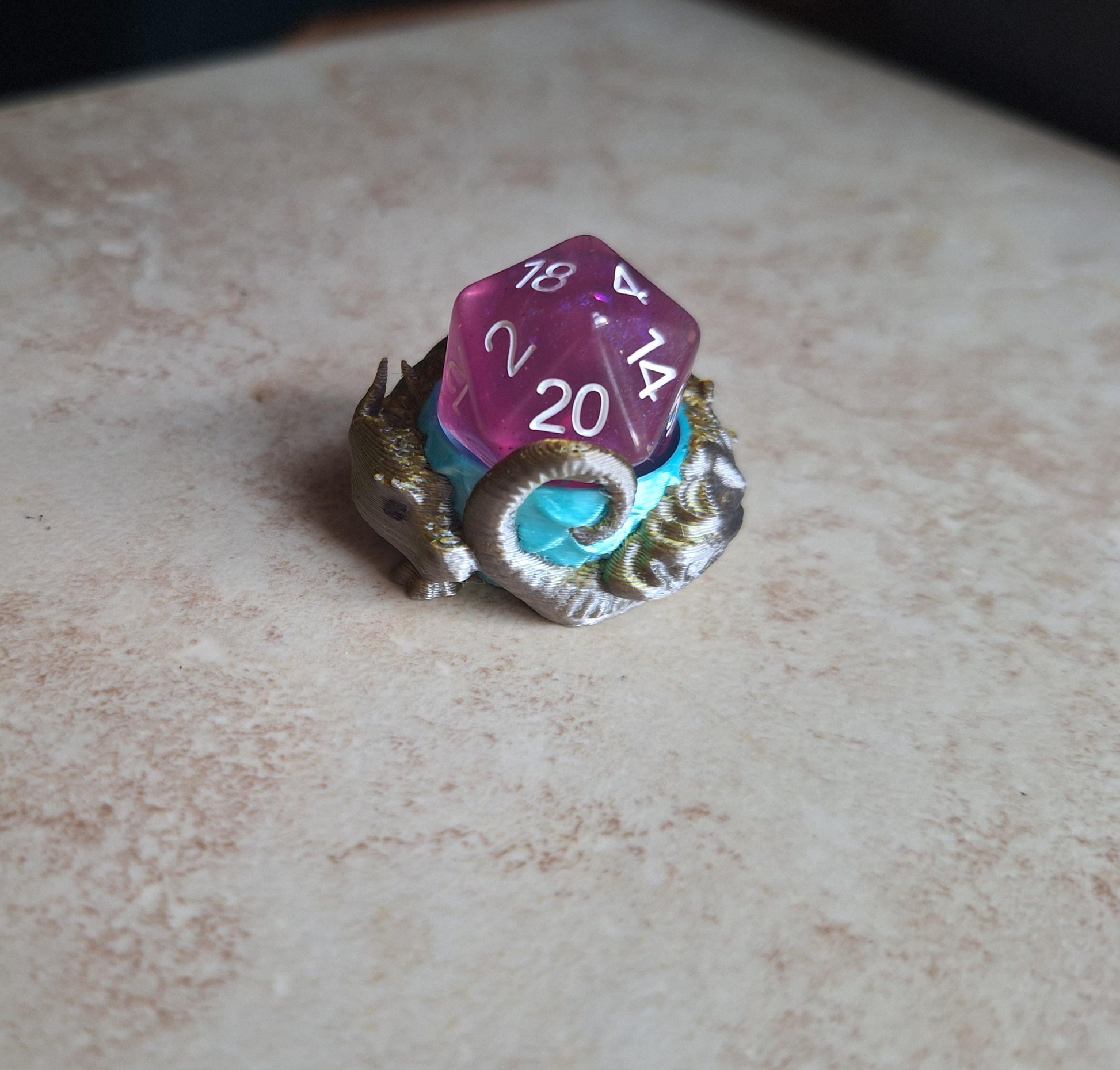 3D printed small gold silver teal metallic dragon dice guardian / 3d dragon dice buddy / 3d printed d20 dice guardian