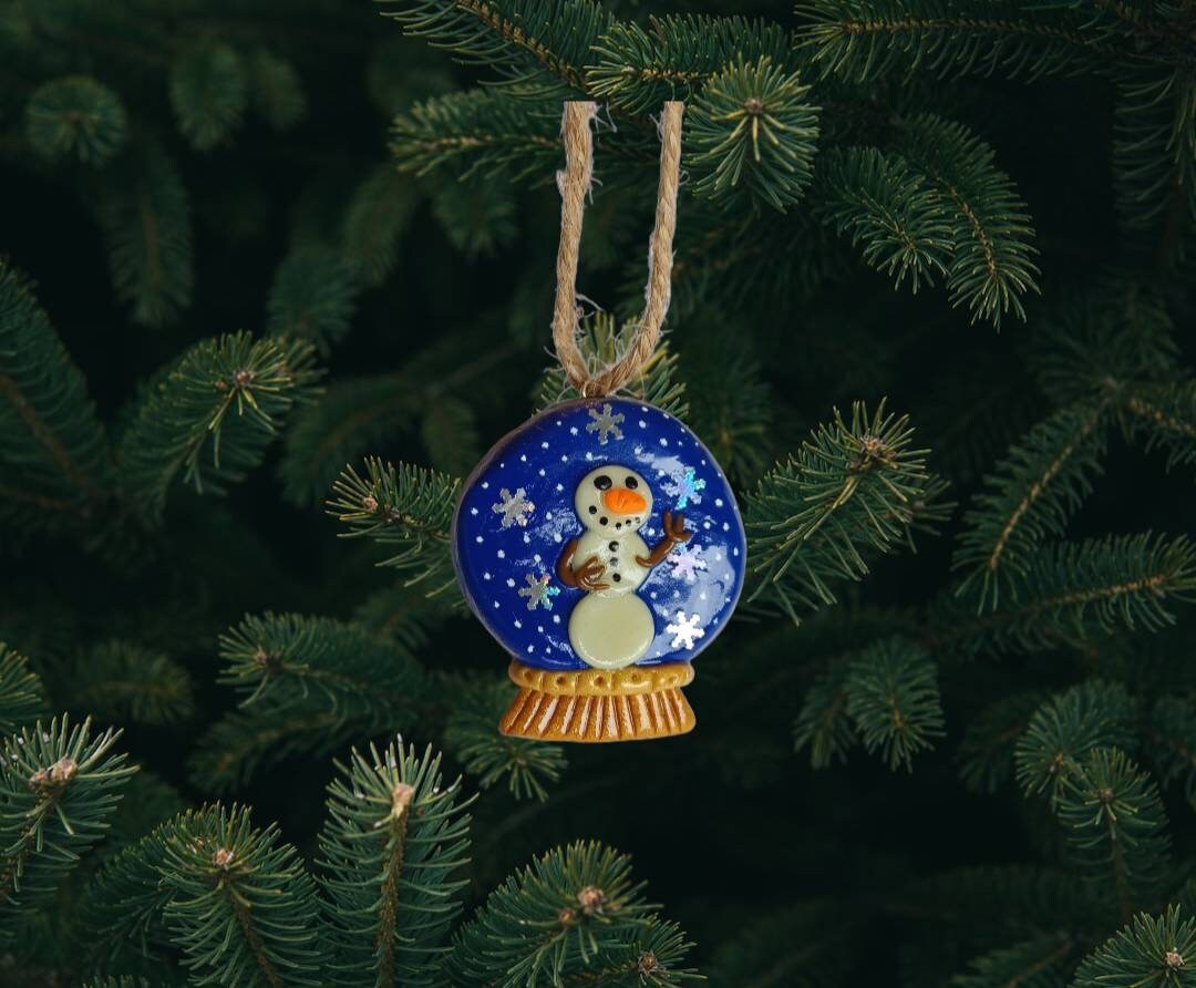 Christmas snowglobe ornament / snow globe ornament / polymer clay snowman ornament / polymer clay christmas ornament