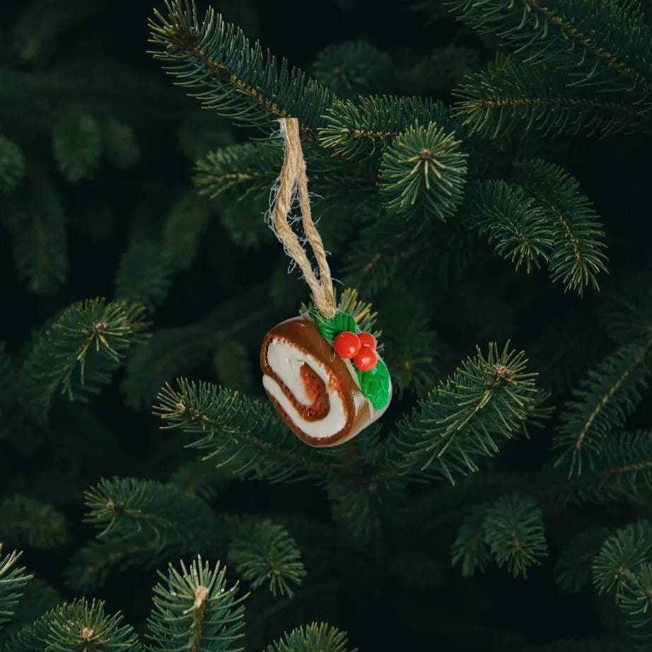 Christmas yule log ornament / Christmas dessert cake ornament / polymer clay christmas ornament / polymer clay yule log cake roll ornament
