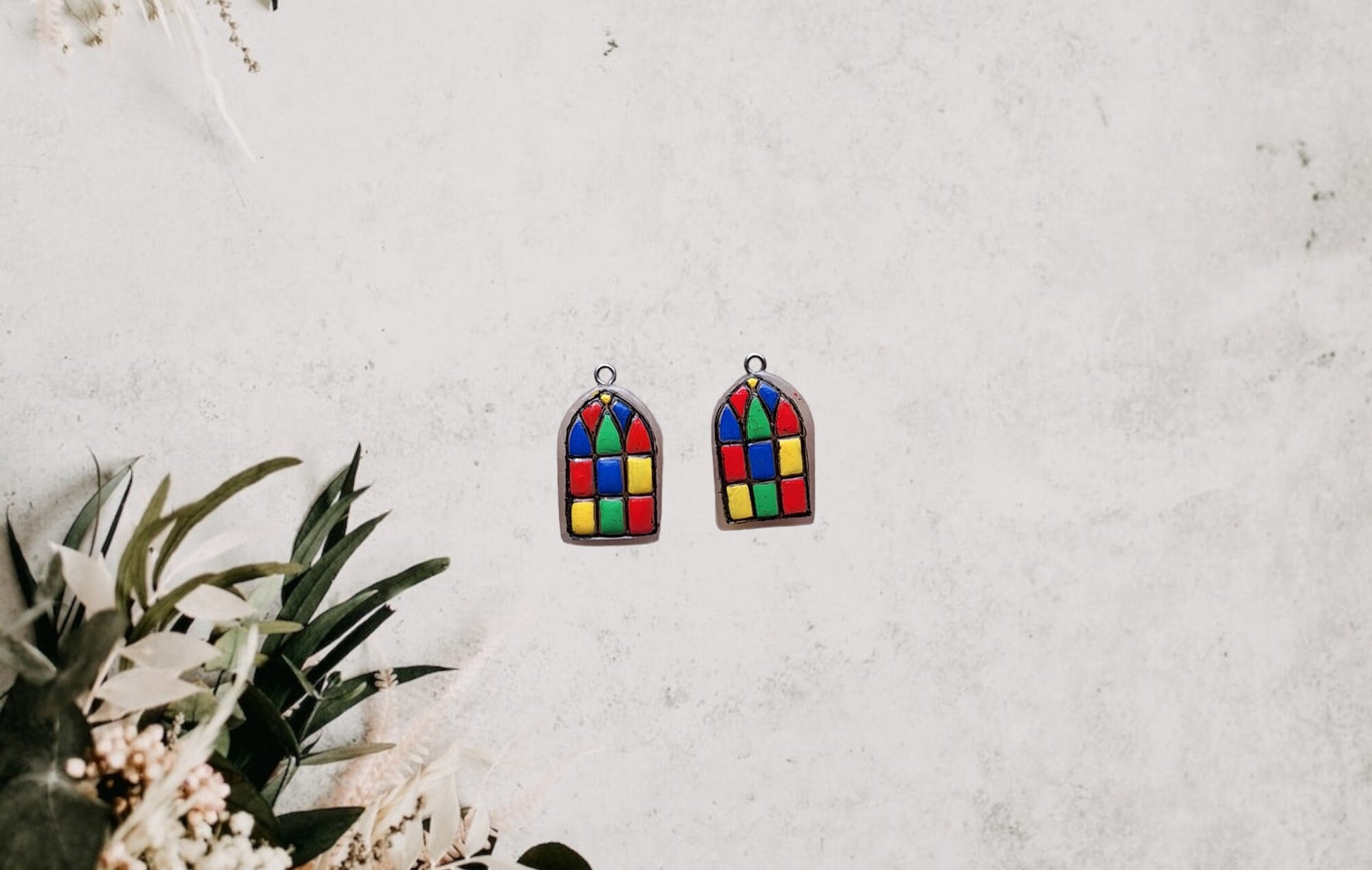 Clay faux stained glass window colorful charms / polymer clay Christmas charms / Christian jewelry charms holiday charms stitch marker