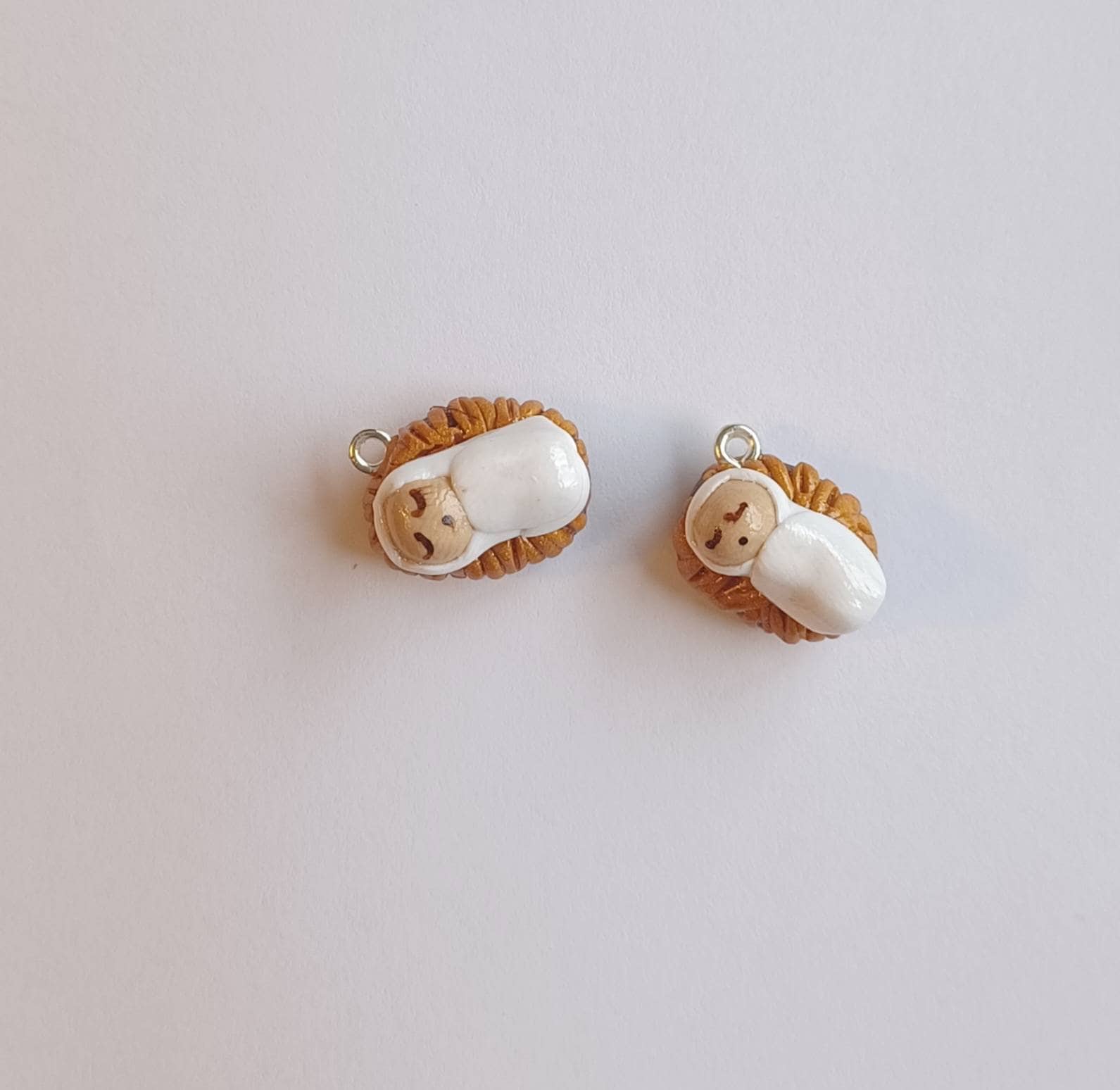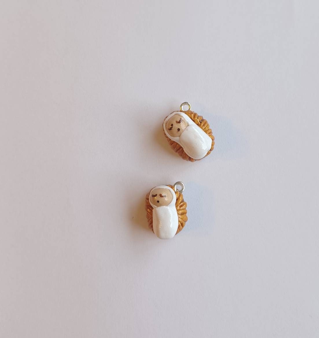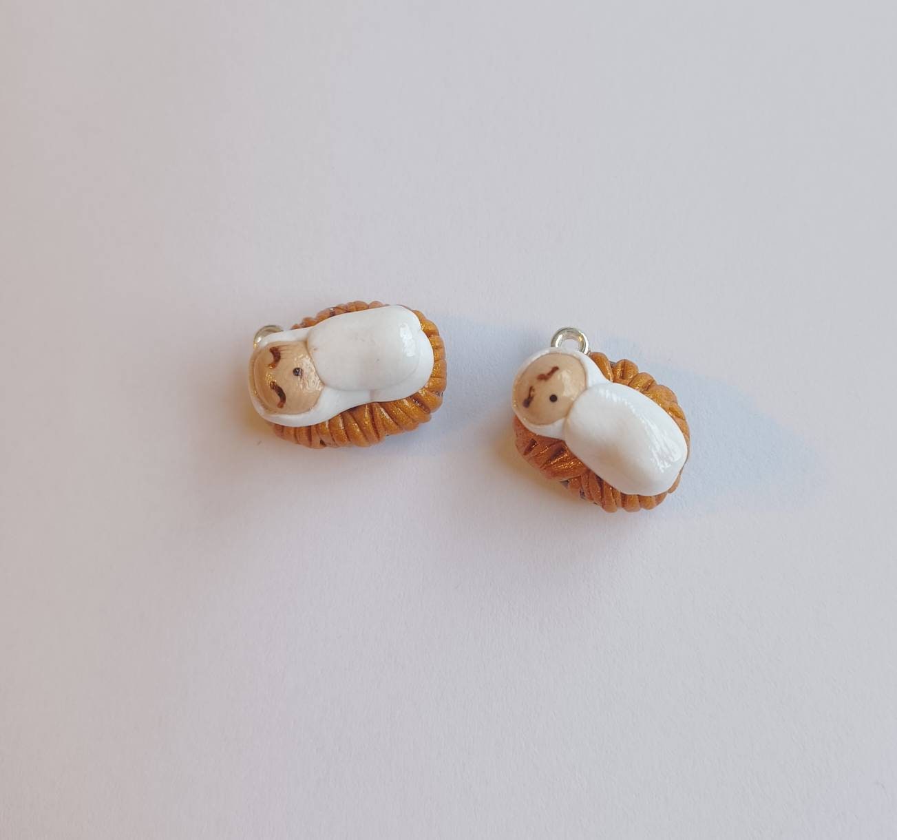 Clay Nativity baby Jesus charms / polymer clay Christmas charms / Christian jewelry charms / tiny baby Jesus manger charms