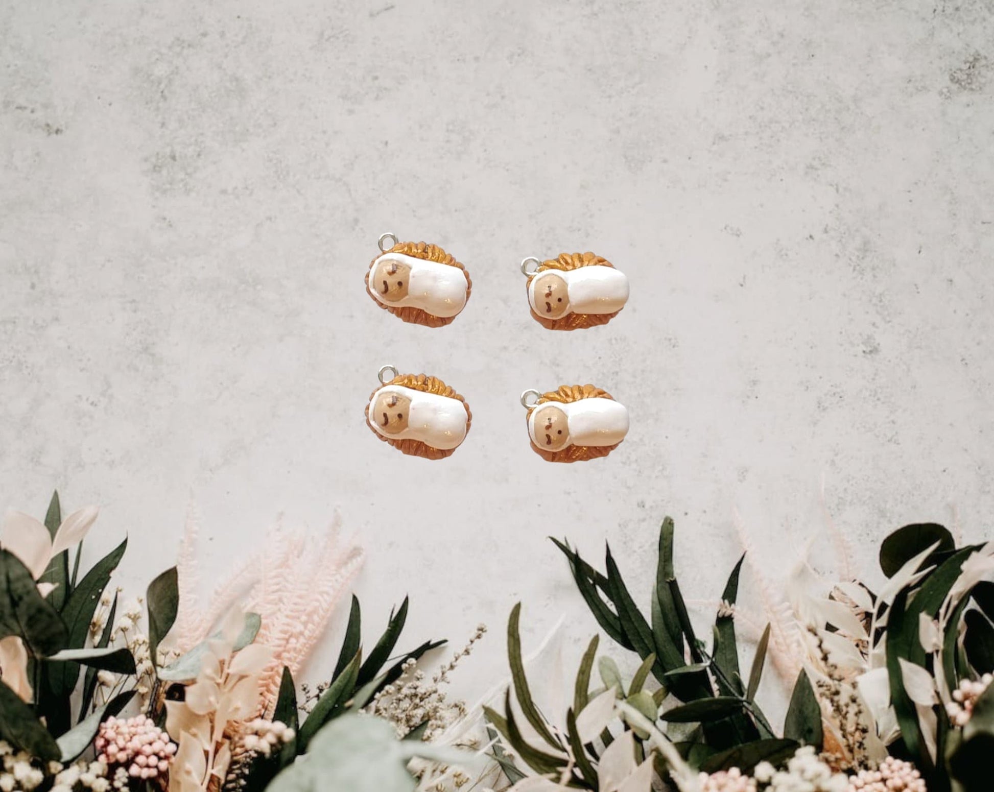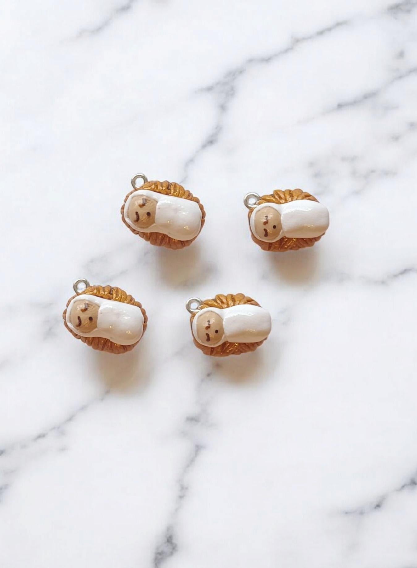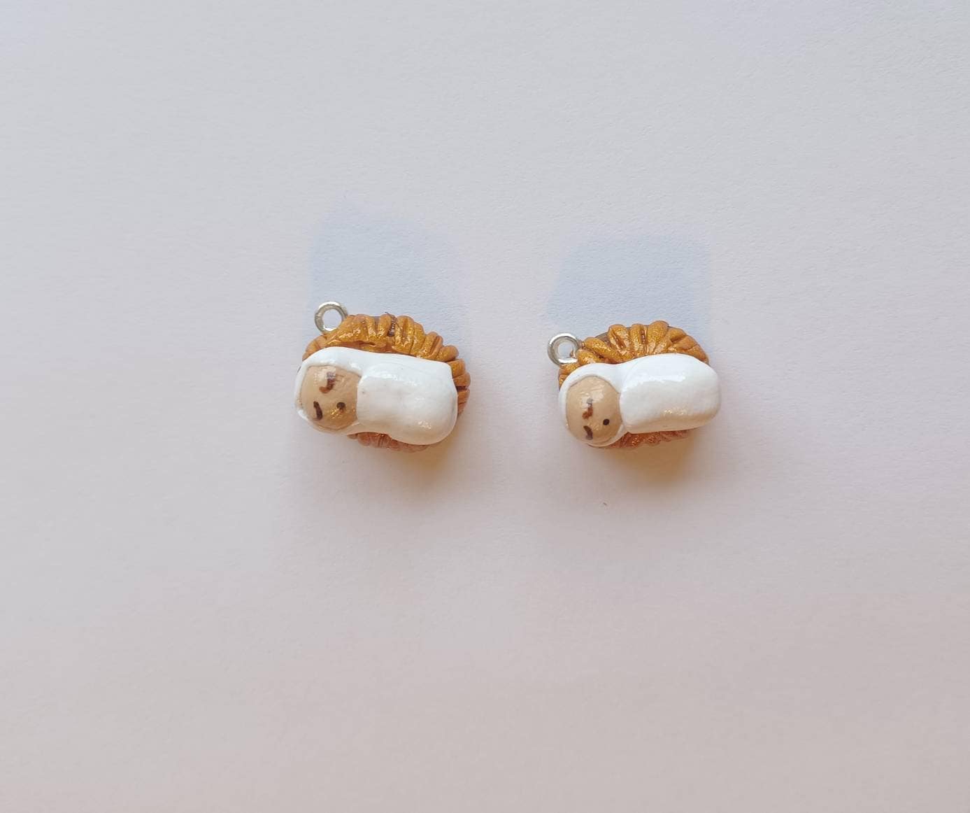 Clay Nativity baby Jesus charms / polymer clay Christmas charms / Christian jewelry charms / tiny baby Jesus manger charms