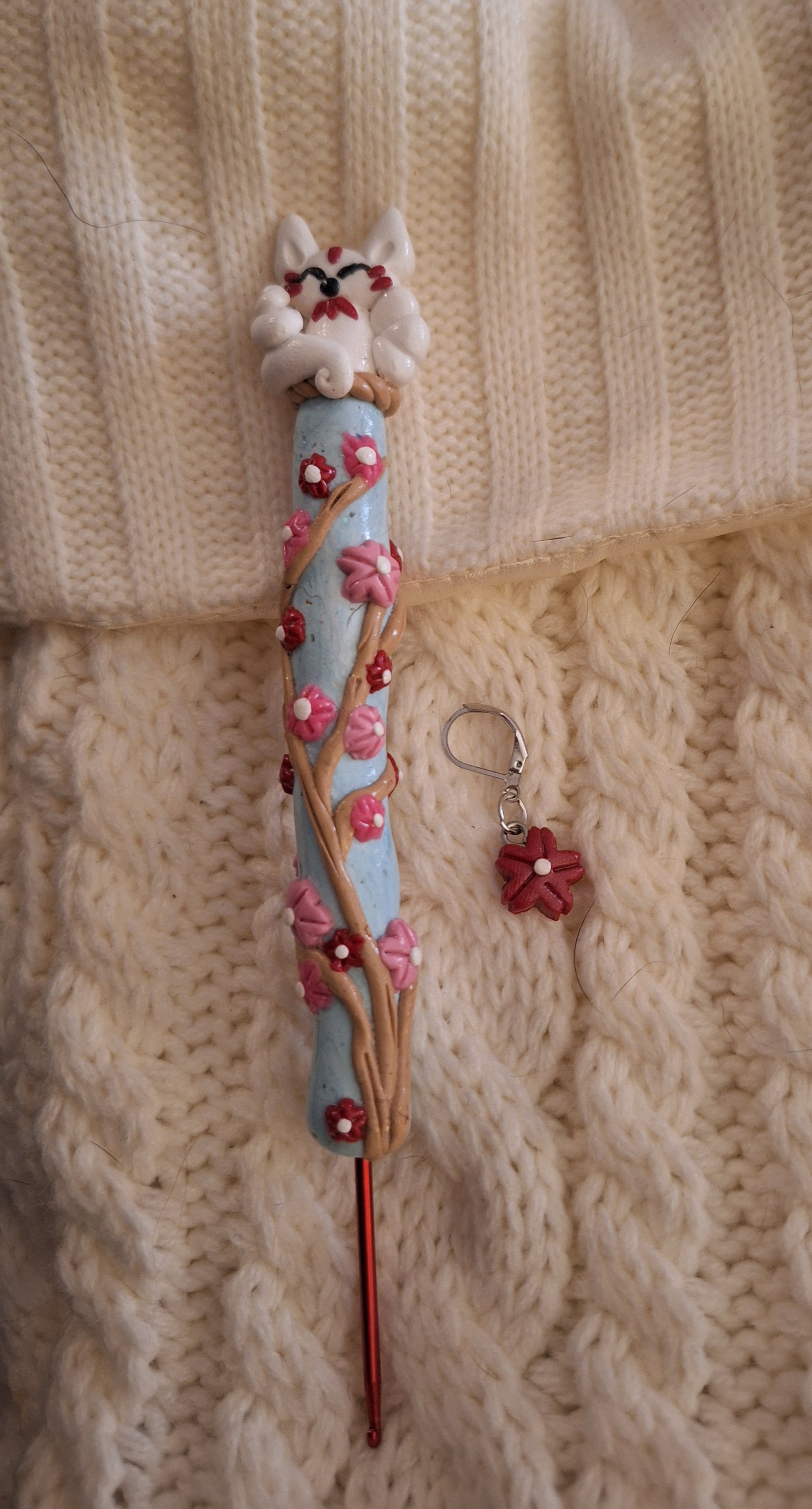 Polymer clay cute sakura cherry blossom kitsune fox crochet hook