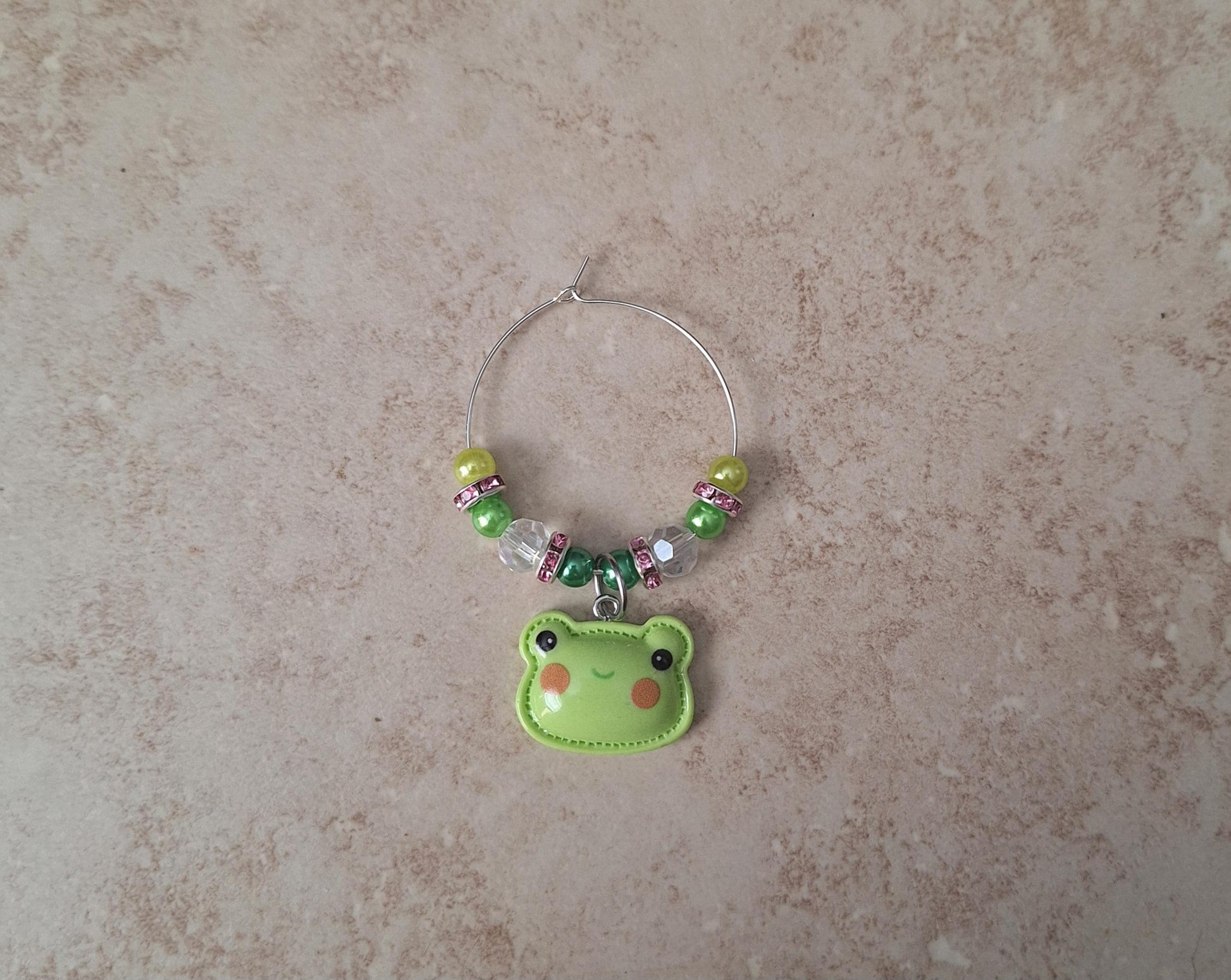 faux pearl kawaii cute frog charm tumbler accessories tumbler charm buddy / beaded green frog cup handle charm
