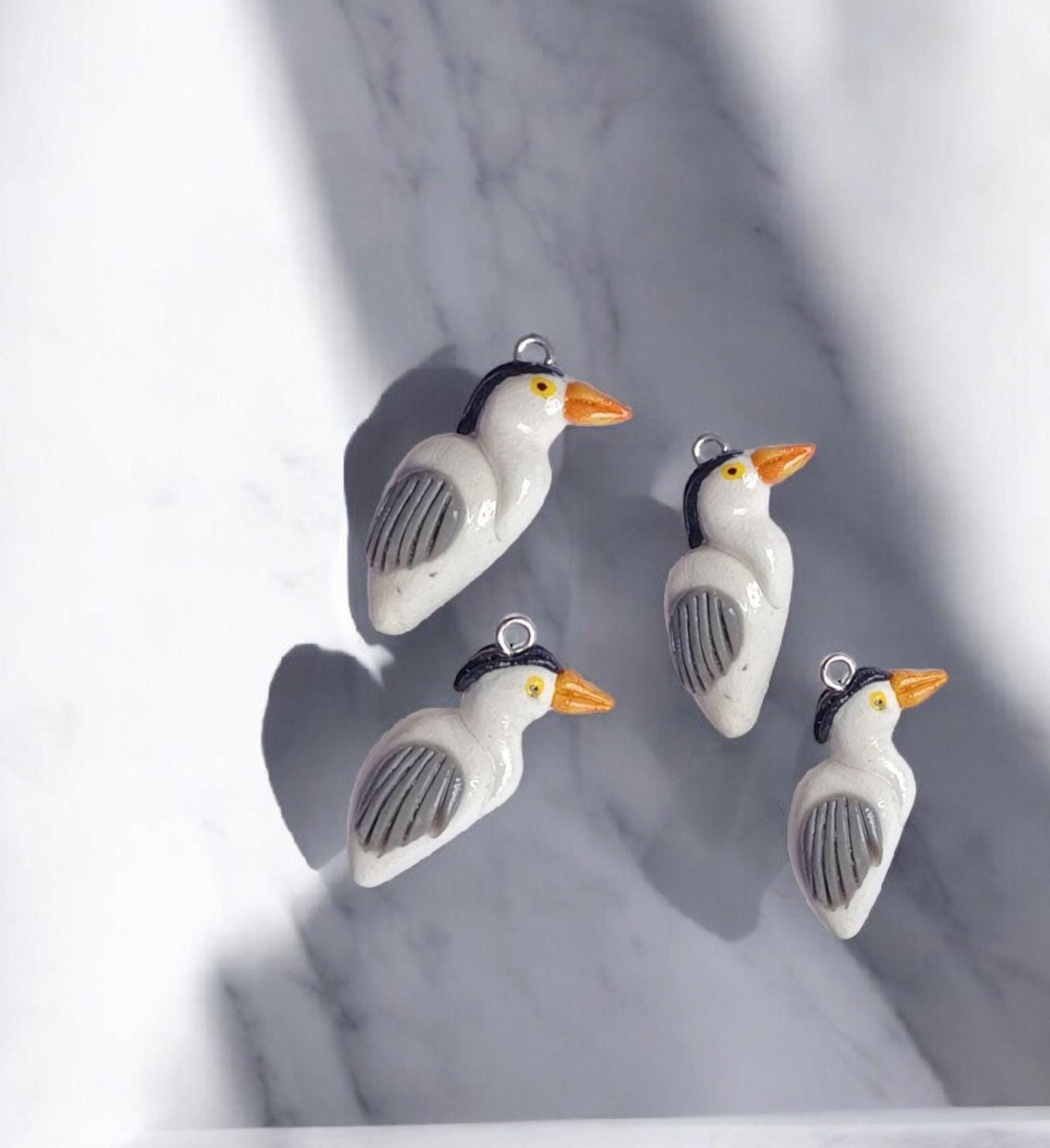 Kawaii blue heron charms / polymer clay bird charms / kawaii animal charms / kawaii blue heron crane bird jewelry