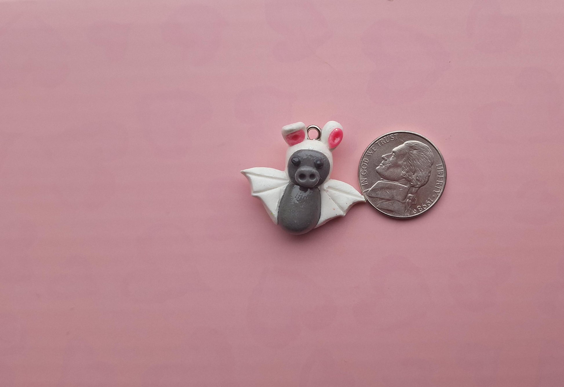 Kawaii bunny rabbit bat charm / polymer clay holiday charms / clay charm jewelry / bat charm stitch marker progress keeper
