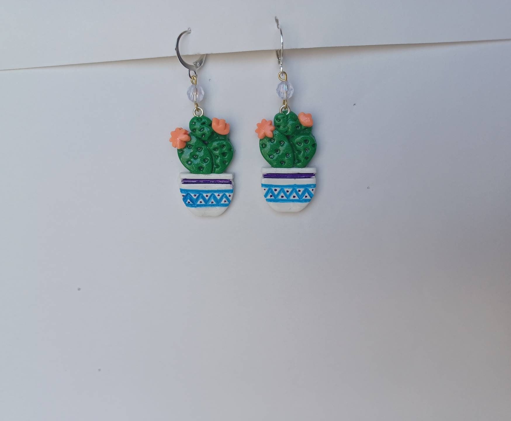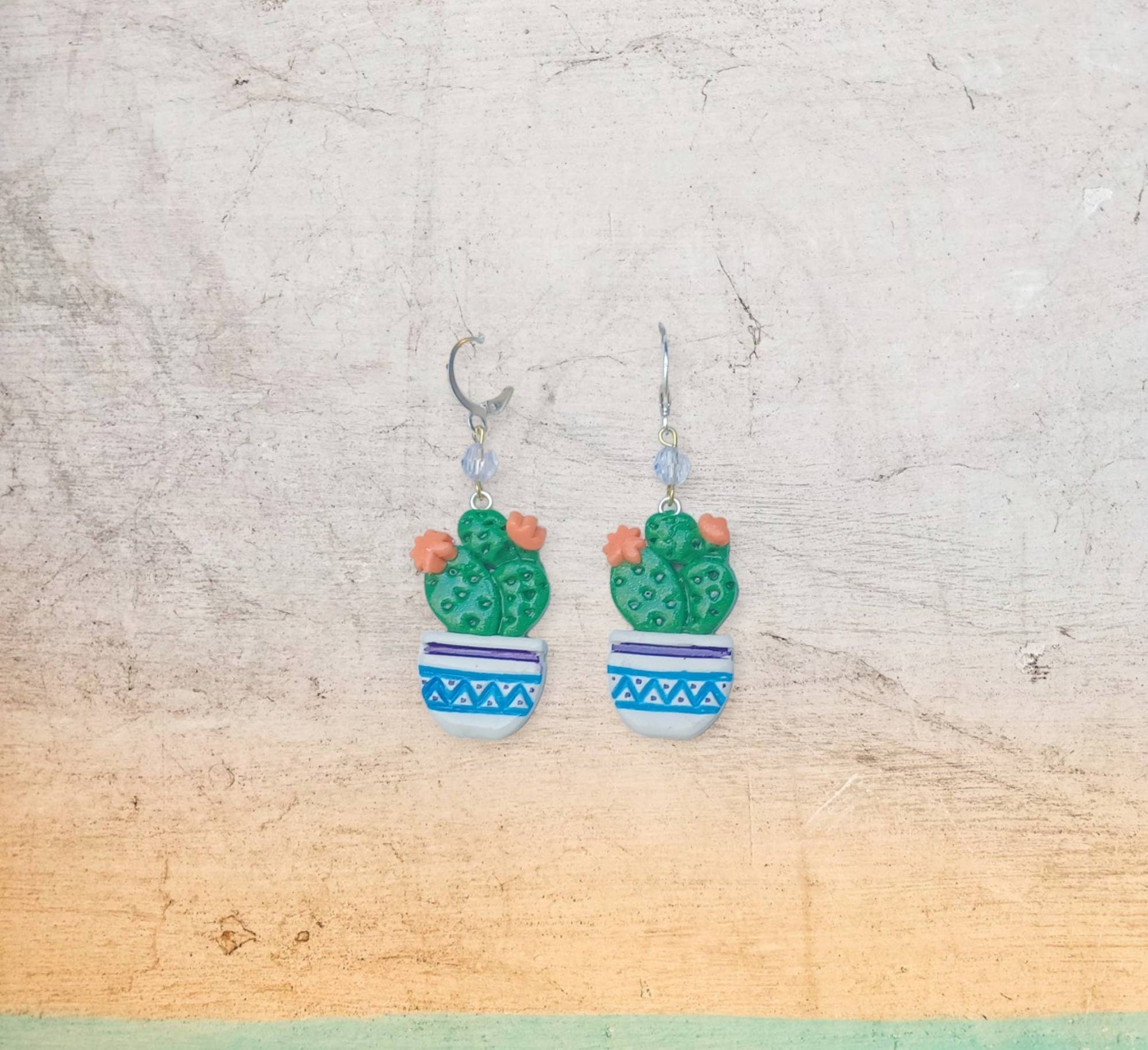 Kawaii cactus earrings / polymer clay cactus plant earrings / kawaii floral plant succulent jewelry / clay cactus