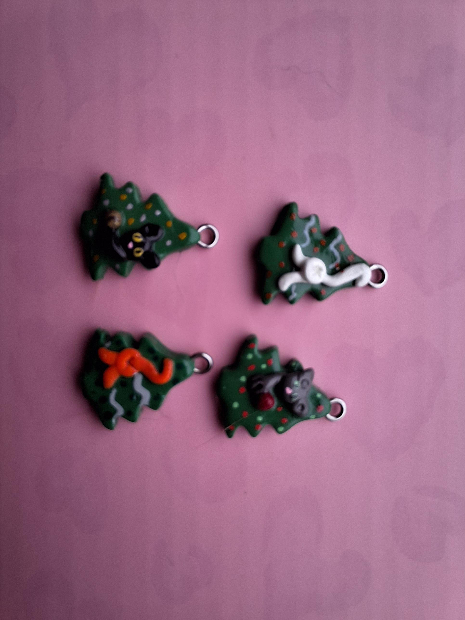 Kawaii cat in Christmas tree charms clay tree charms / jewelry holiday charms / pine tree charms / snow charms progress keeper stitch marker