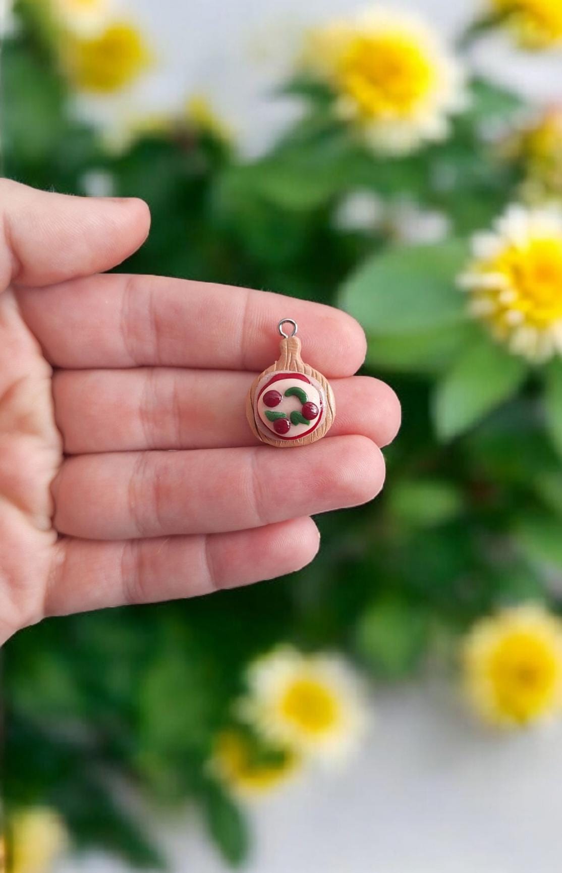 Kawaii charcuterie board pizza food charms / polymer clay cheese pizza board round charms / kawaii food charms jewelry stitchmarker