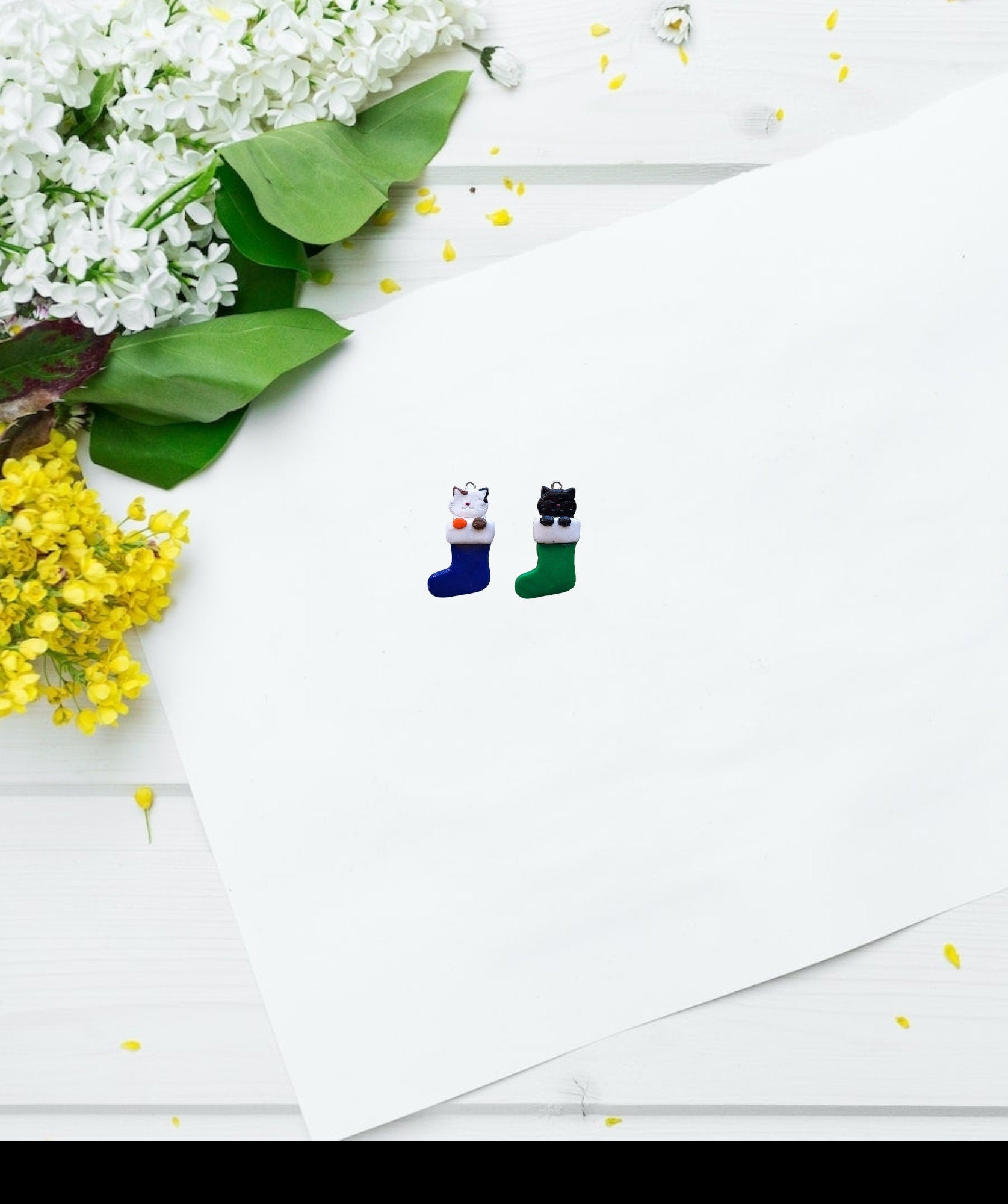 Kawaii christmas animal charms / clay animal charms / puppy dog mouse cat dragon jewelry / animal in stocking snail charms stitch marker