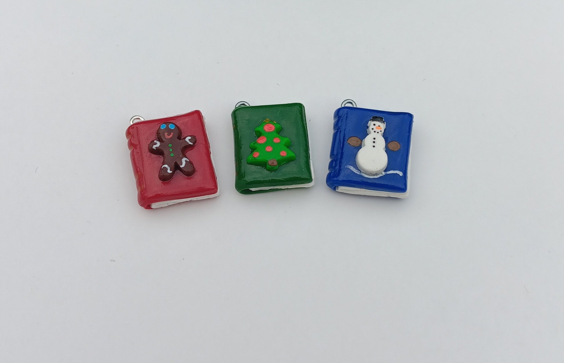 Kawaii christmas book charms / polymer clay faith book charms / Christian jewelry charms / tiny Book charms / clay christmas book charms