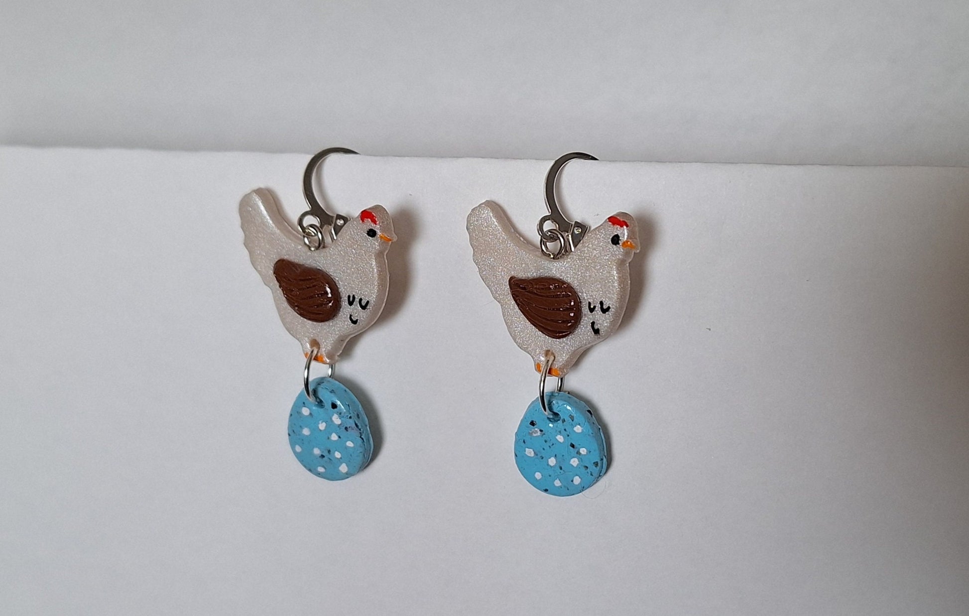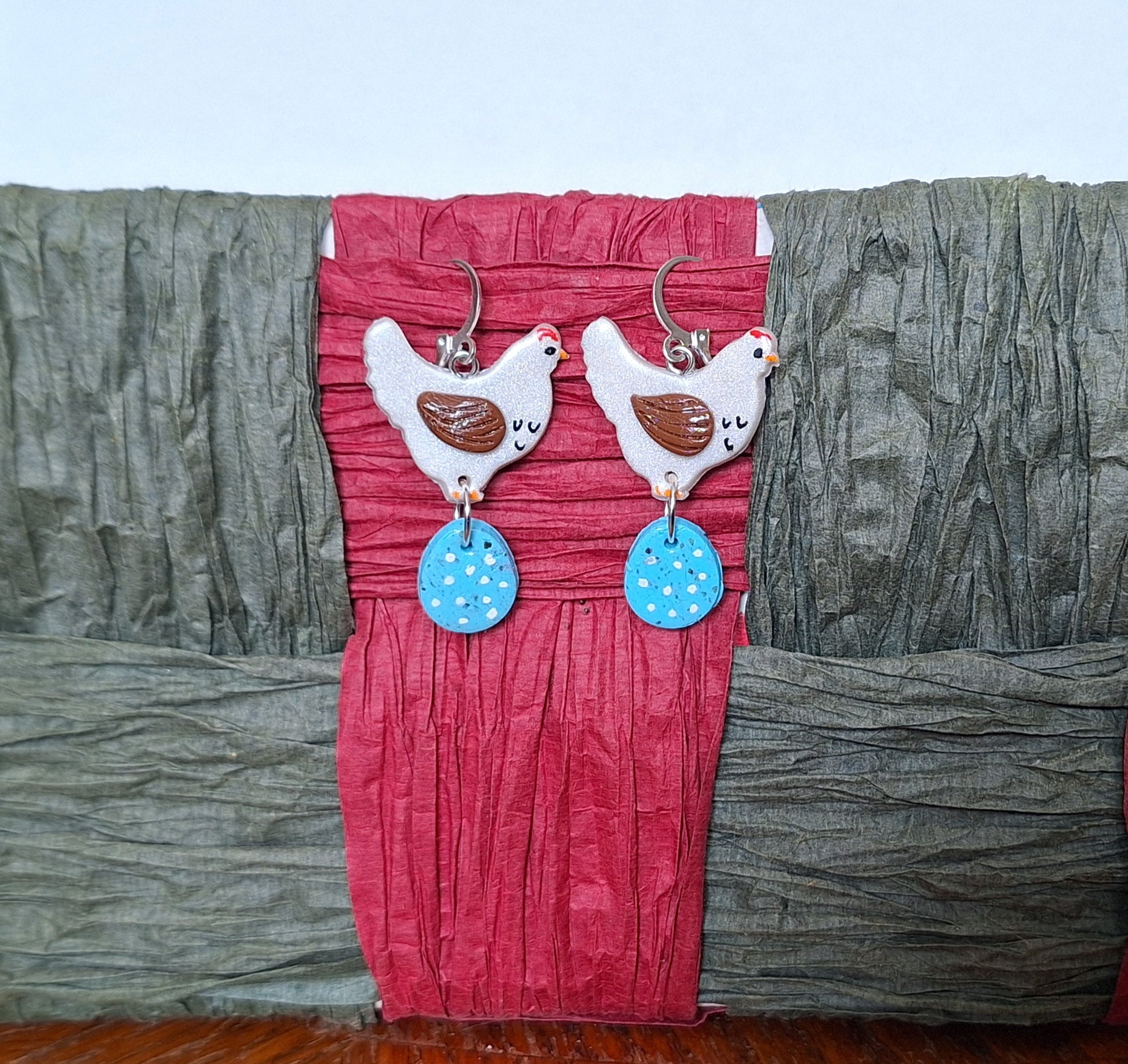 Kawaii clay chicken easter egg earrings / polymer clay spring summer dangle earrings / clay easter earrings jewelry chicken rooster