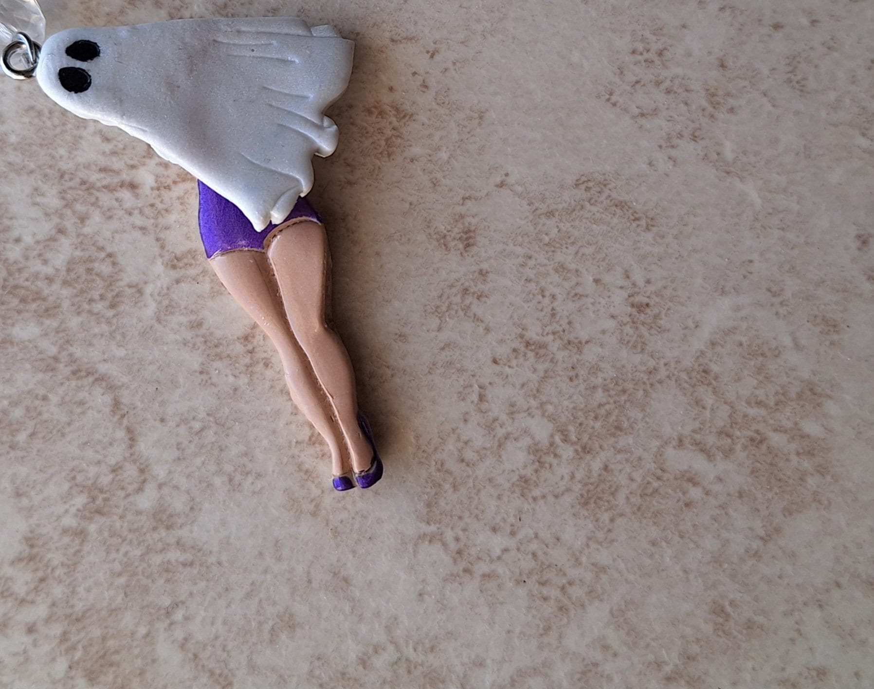 Kawaii clay dangle sheet ghost babe earrings / polymer clay dangle stud earrings / pin-up ghost Halloween holiday jewelry / ghost earrings