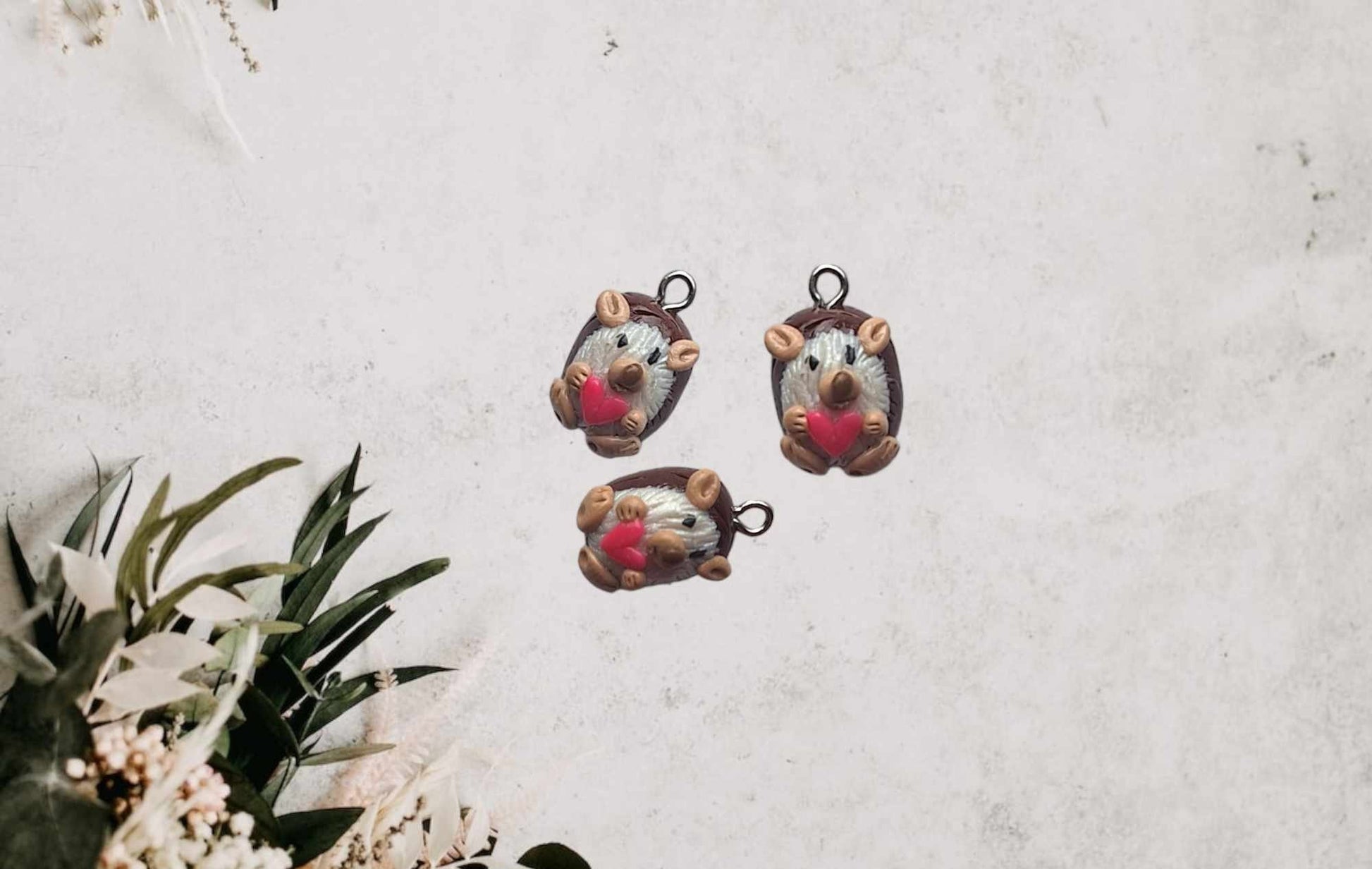 Kawaii clay heart hedgehog charms / polymer clay hedge hog pet charms / kawaii animal charms / porcupine jewelry charm stitch marker
