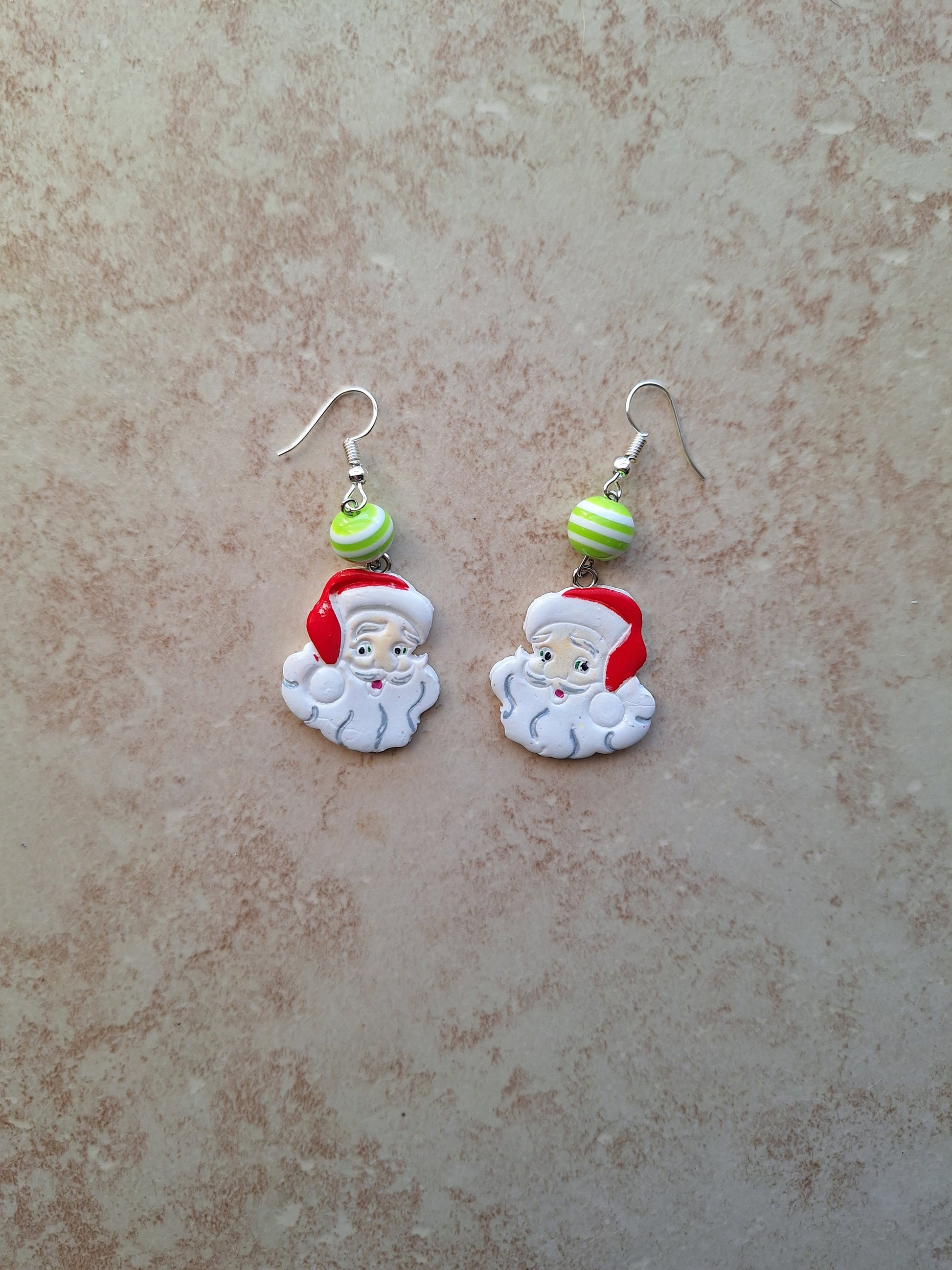 Kawaii clay santa claus earrings / polymer clay vintage santa holiday earrings / christmas holiday winter jewelry / clay santa earrings