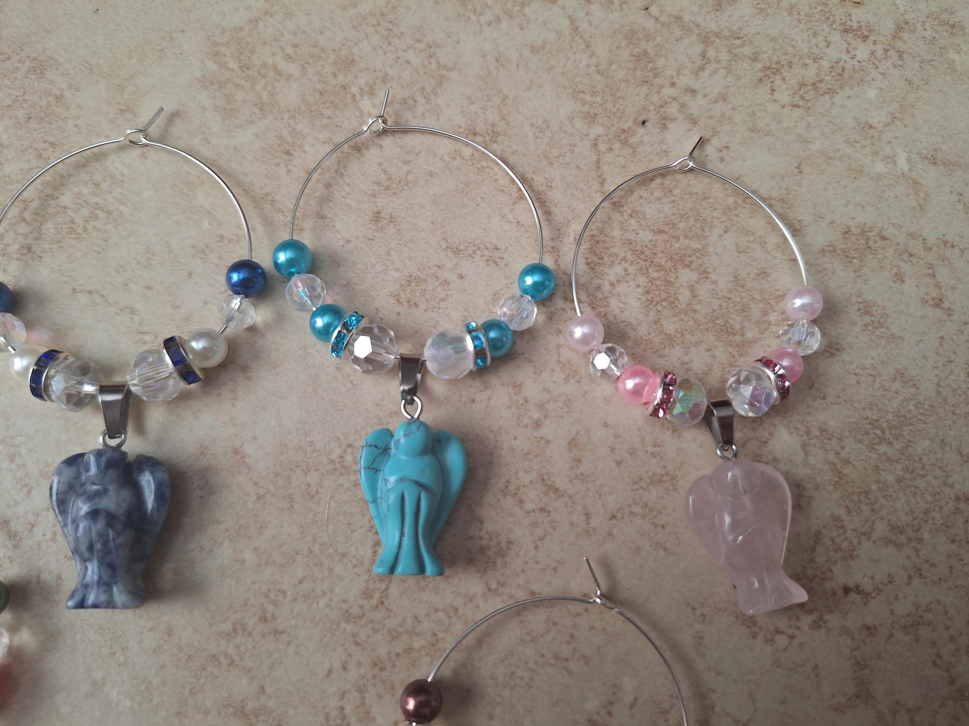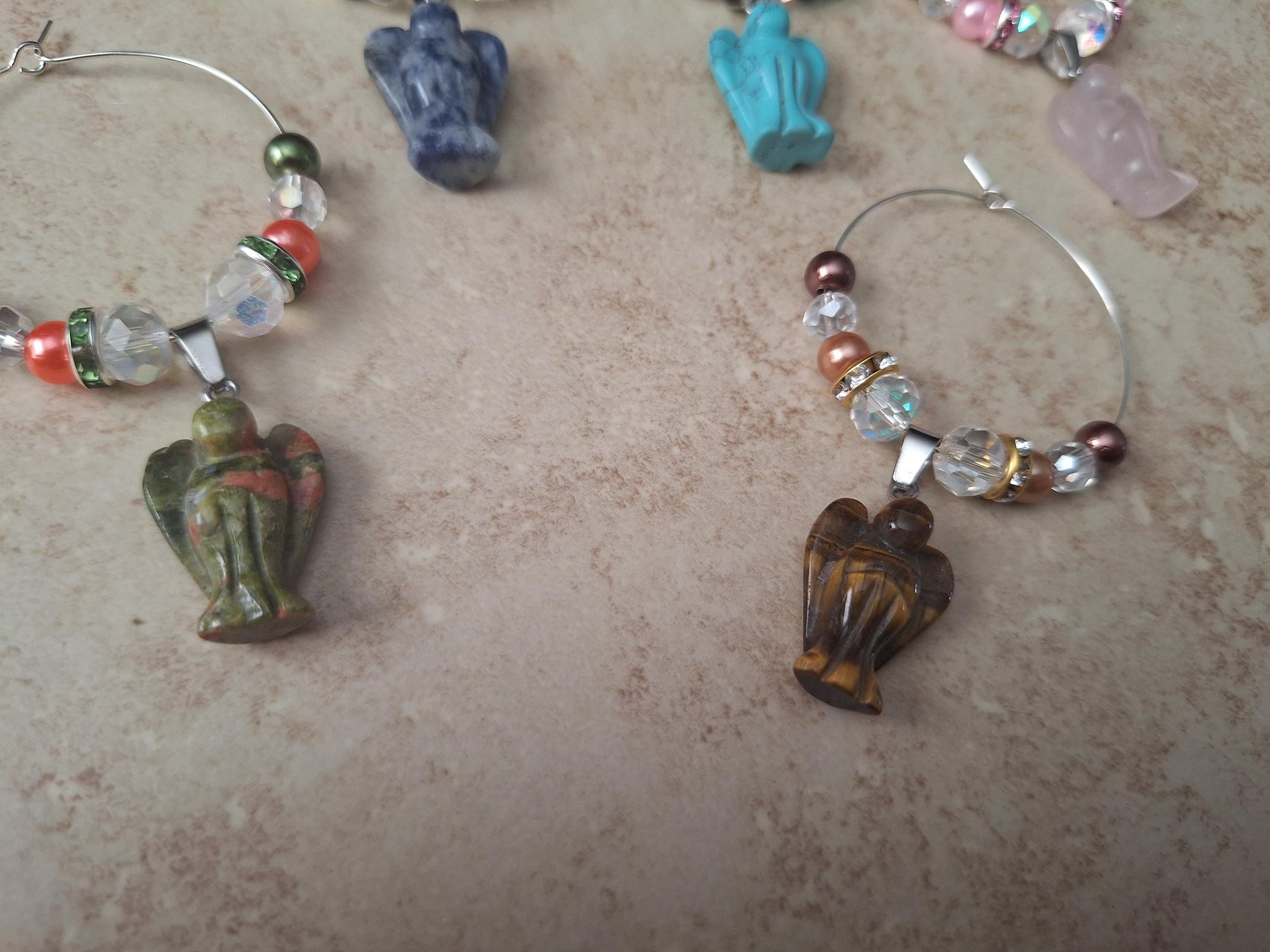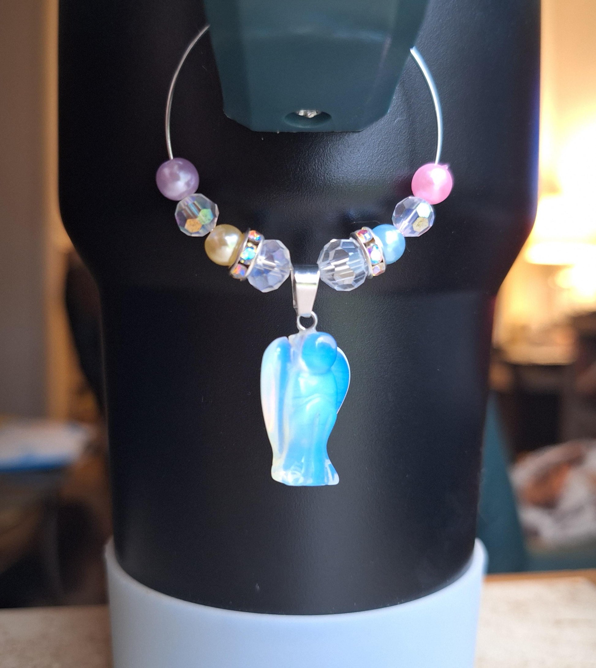 kawaii faux pearl opal tiger eye angel crystal handle charm tumbler crystal tumbler charm buddy / quartz angel gem tumbler handle charm
