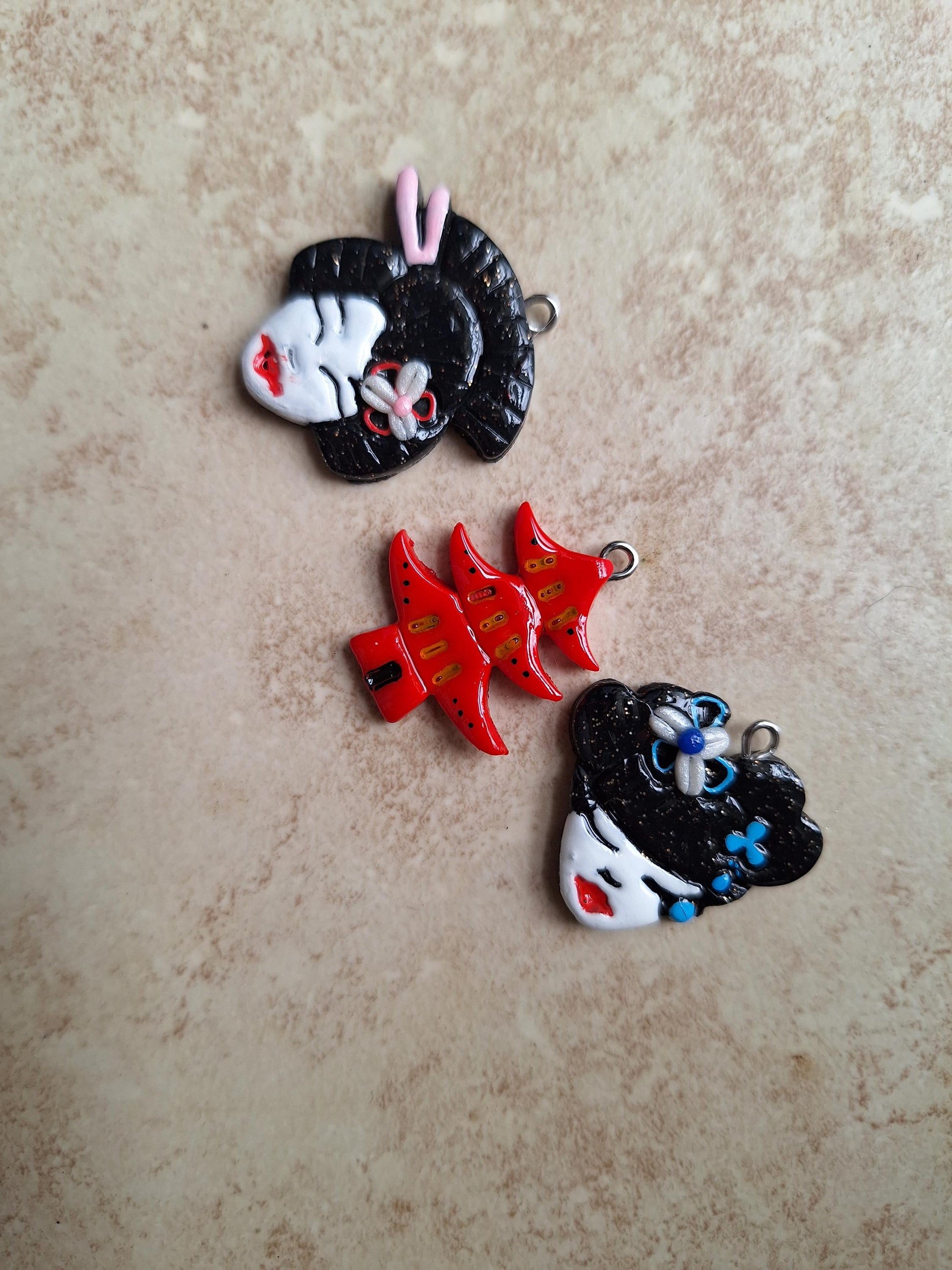 Kawaii floral geisha charm / polymer clay oriental sakura geisha charm / Japanese pagoda style charm jewelry stitchmarker progress keeper
