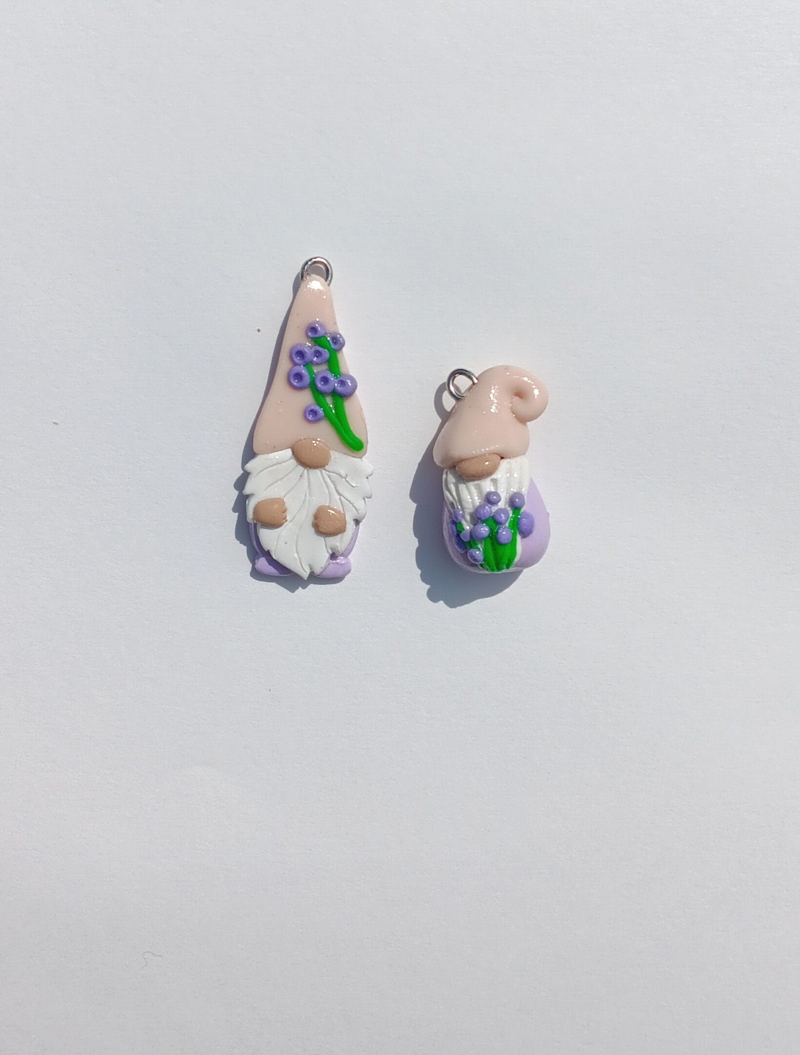 Kawaii floral Lavendar gnome charms / polymer clay garden gnome charms / kawaii toadstool charms / lavender gnome charms stitch marker