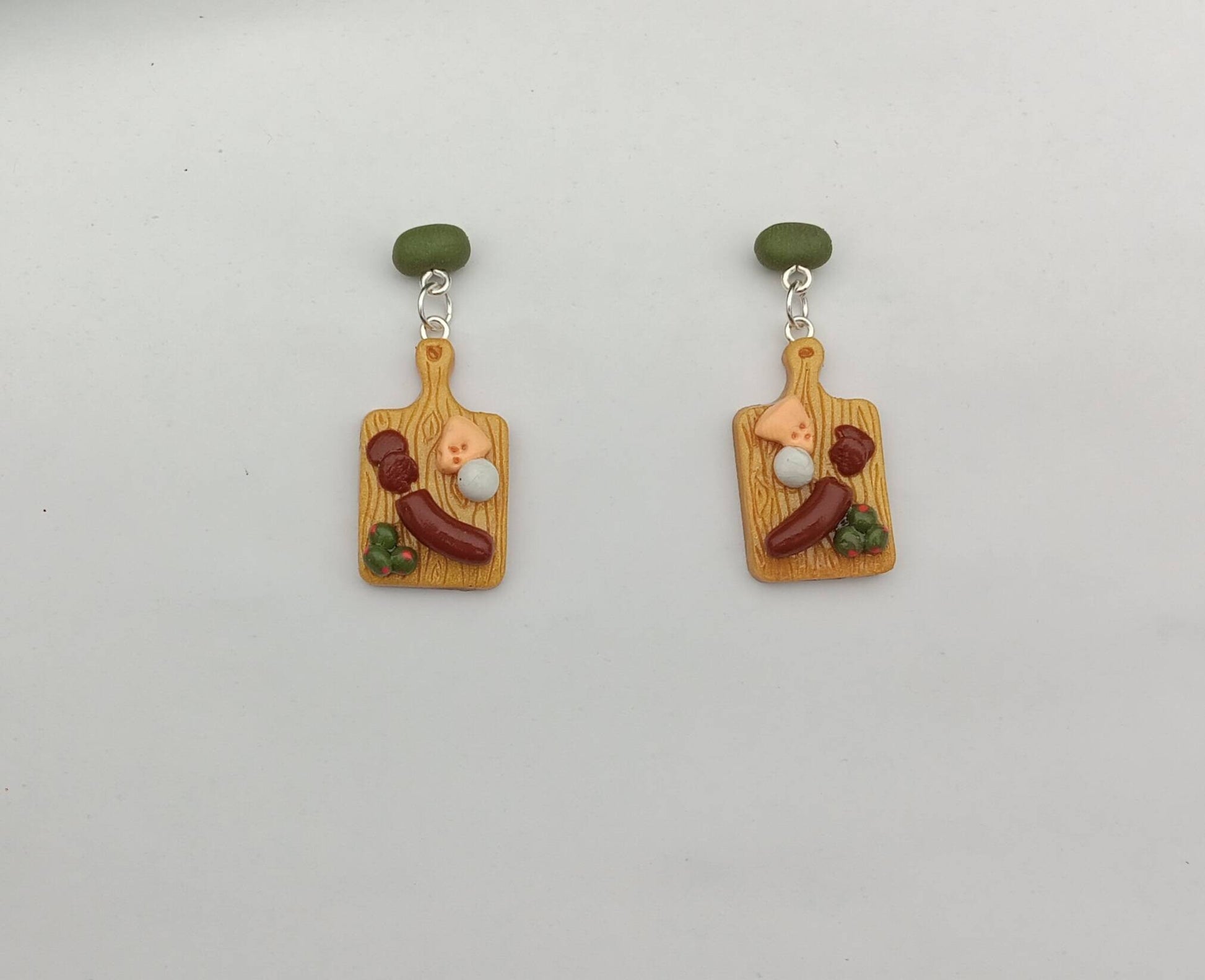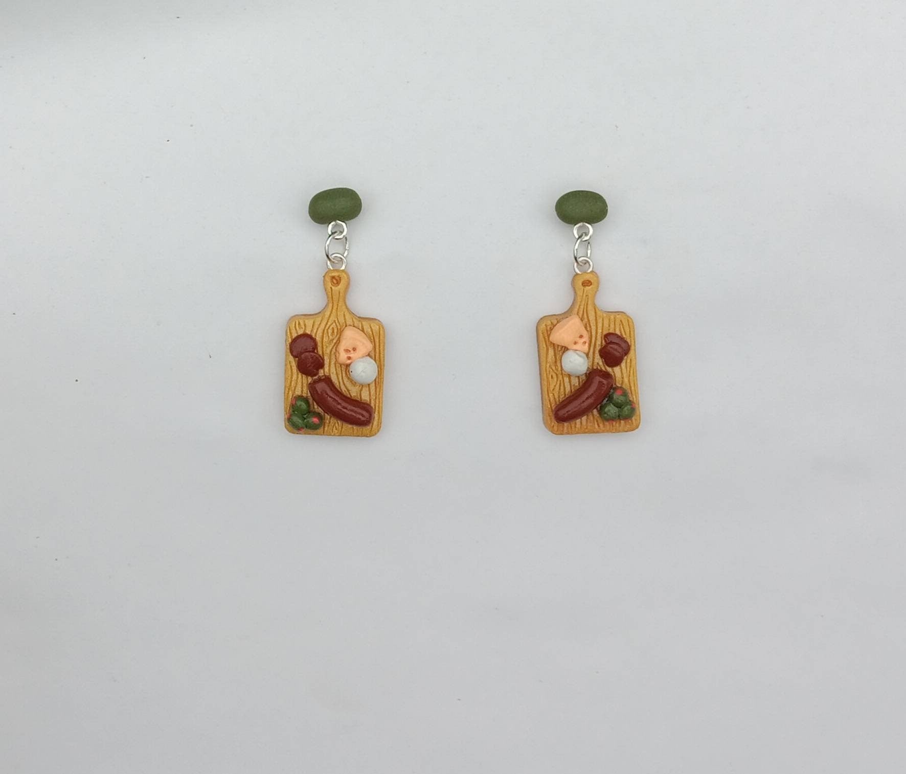 Kawaii food earrings / clay cheese sausage olive earrings / clay food jewelry / charcuterie board earrings / charcuterie board jewelry charm