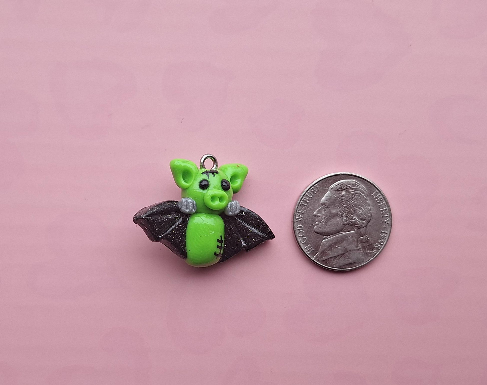 Kawaii green frankenstein bat charm / polymer clay halloween charms / clay charm jewelry / bat charm stitch marker progress keeper