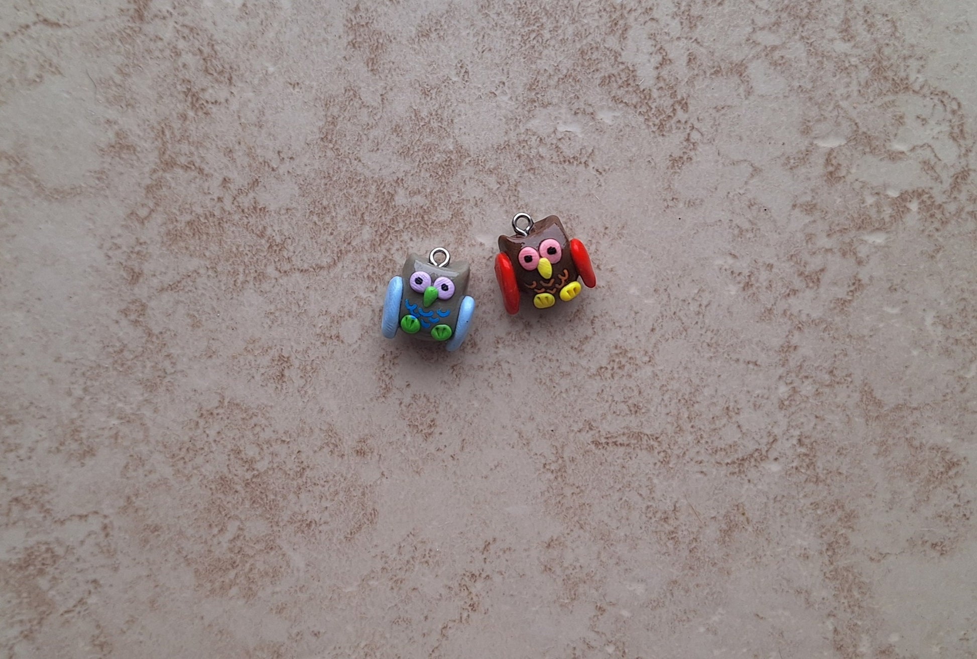 Kawaii hanging owl charms / polymer clay halloween fall charms / kawaii clay charms / clay jewelry Colorful owl charms stitch marker