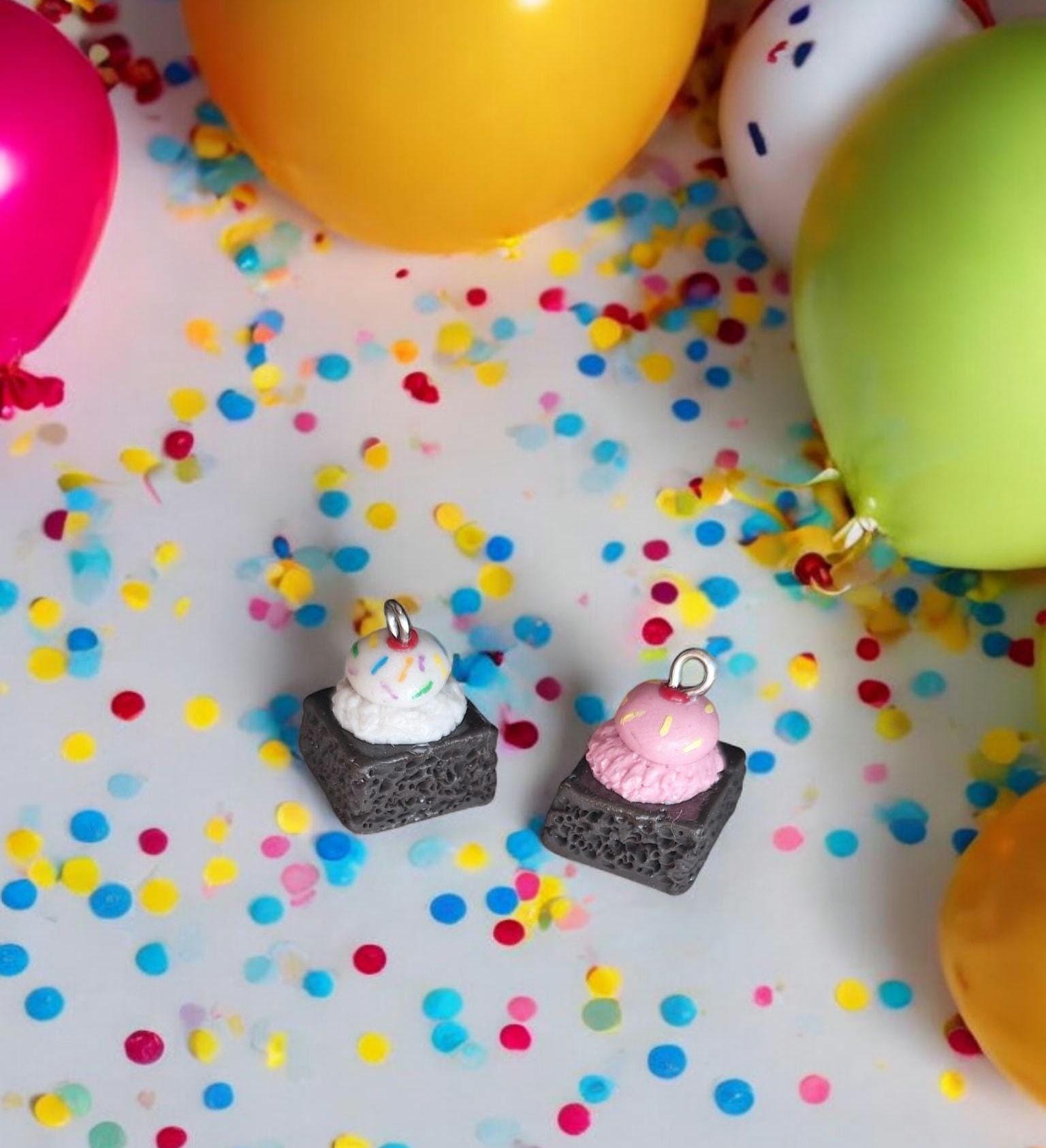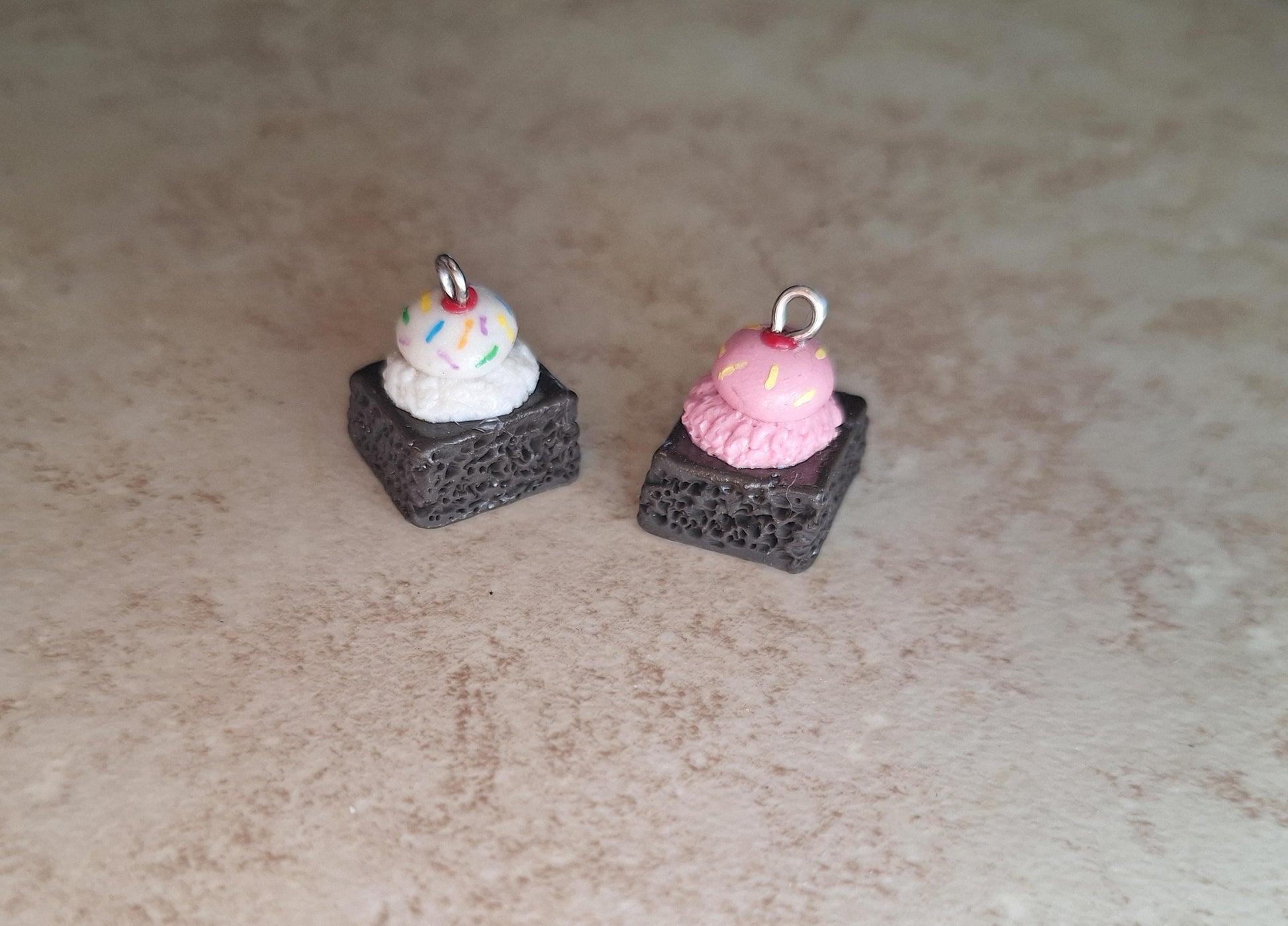 Kawaii ice cream brownie square charms / polymer clay brownie charms / kawaii food charms / kawaii food jewelry charm stitch marker