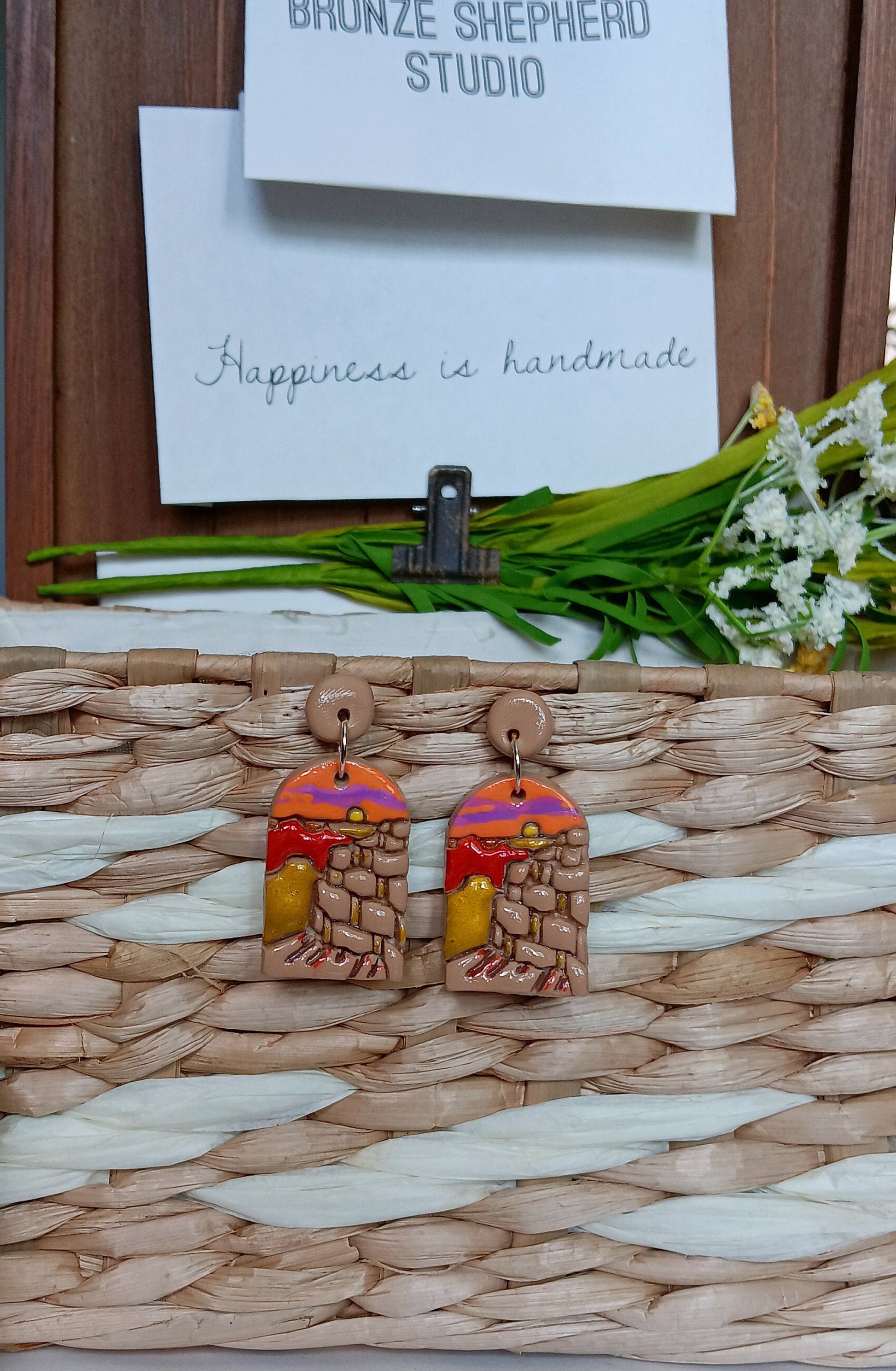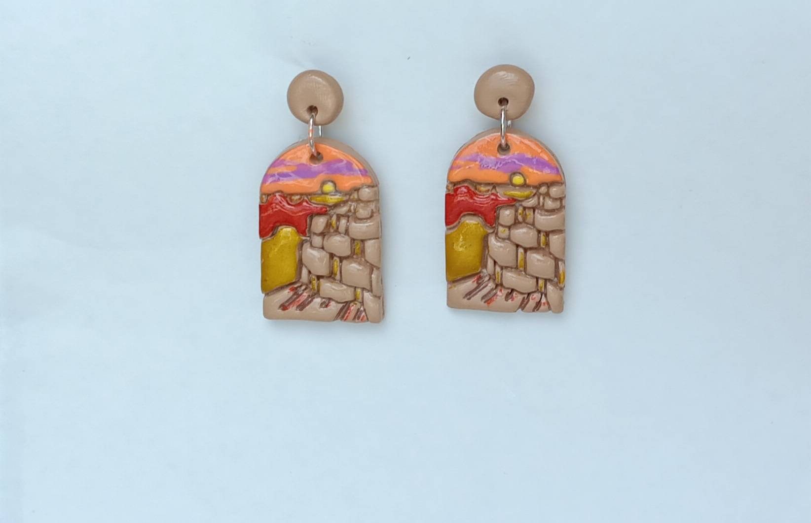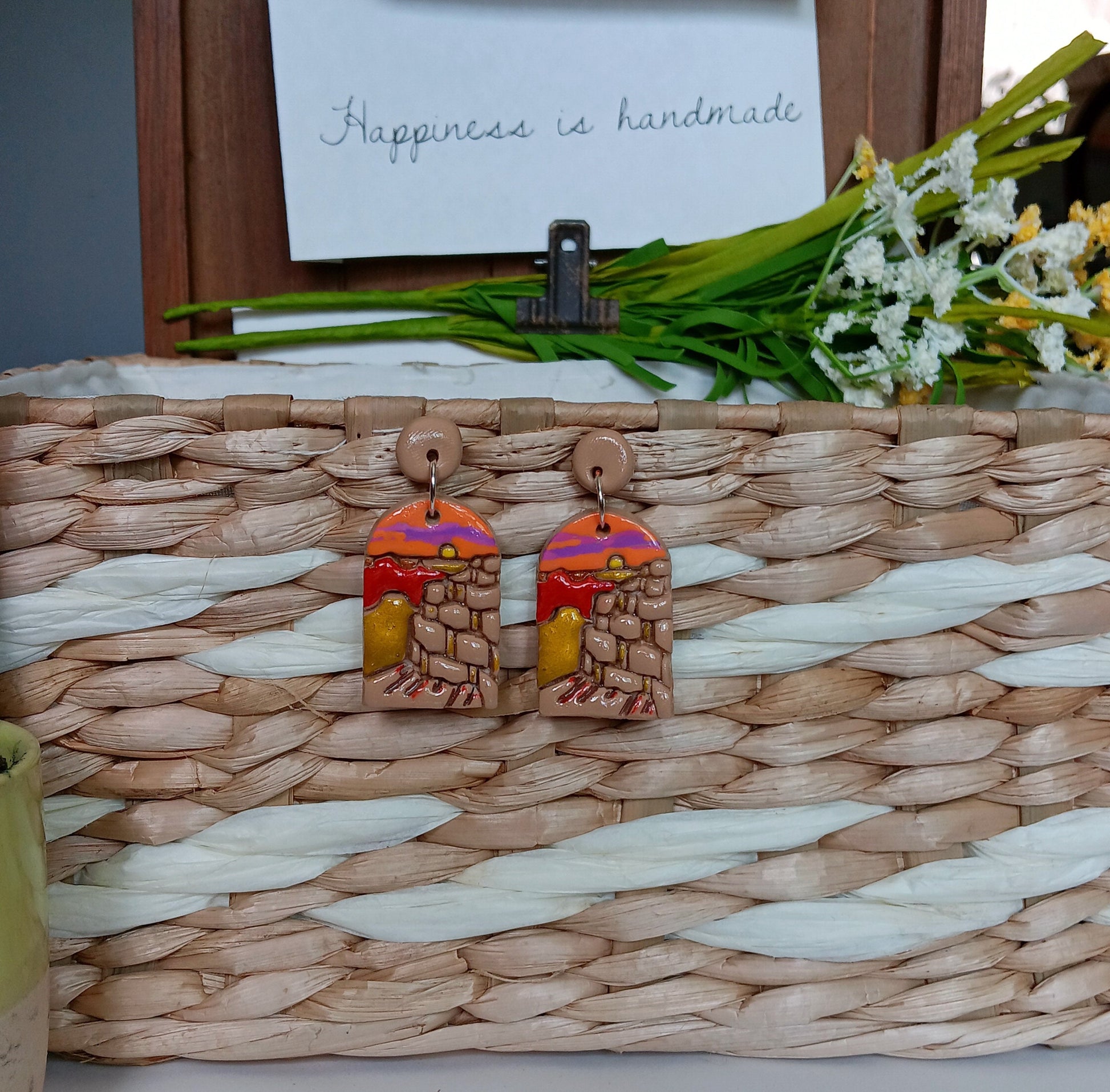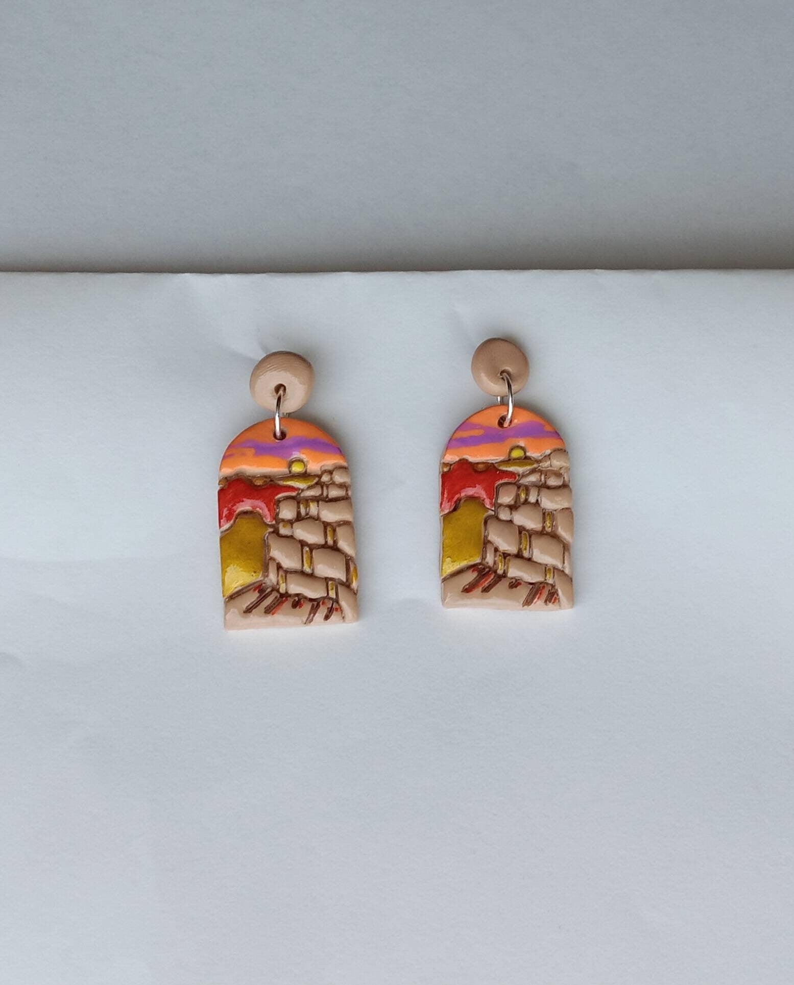Kawaii landscape skyline earrings / polymer clay Grand Canyon dangle earrings / clay grand canyon jewelry / landscape trees earrings