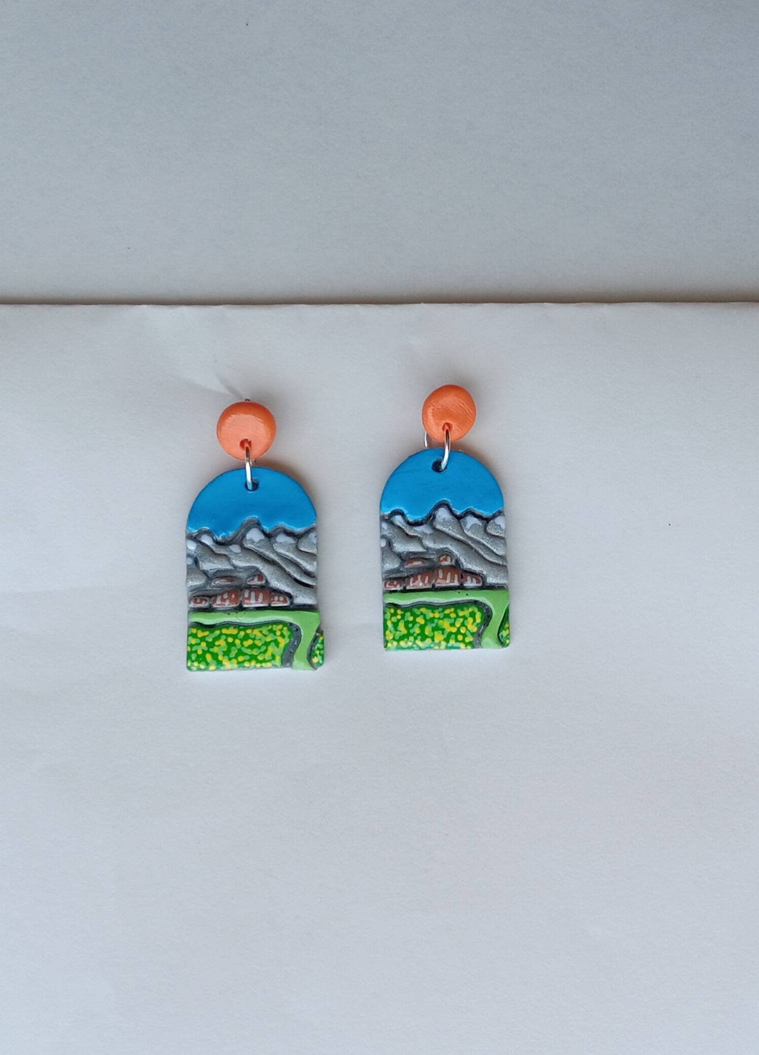 Kawaii landscape skyline earrings / polymer clay Grand Teton dangle earrings / clay grand teton jewelry / landscape trees earrings