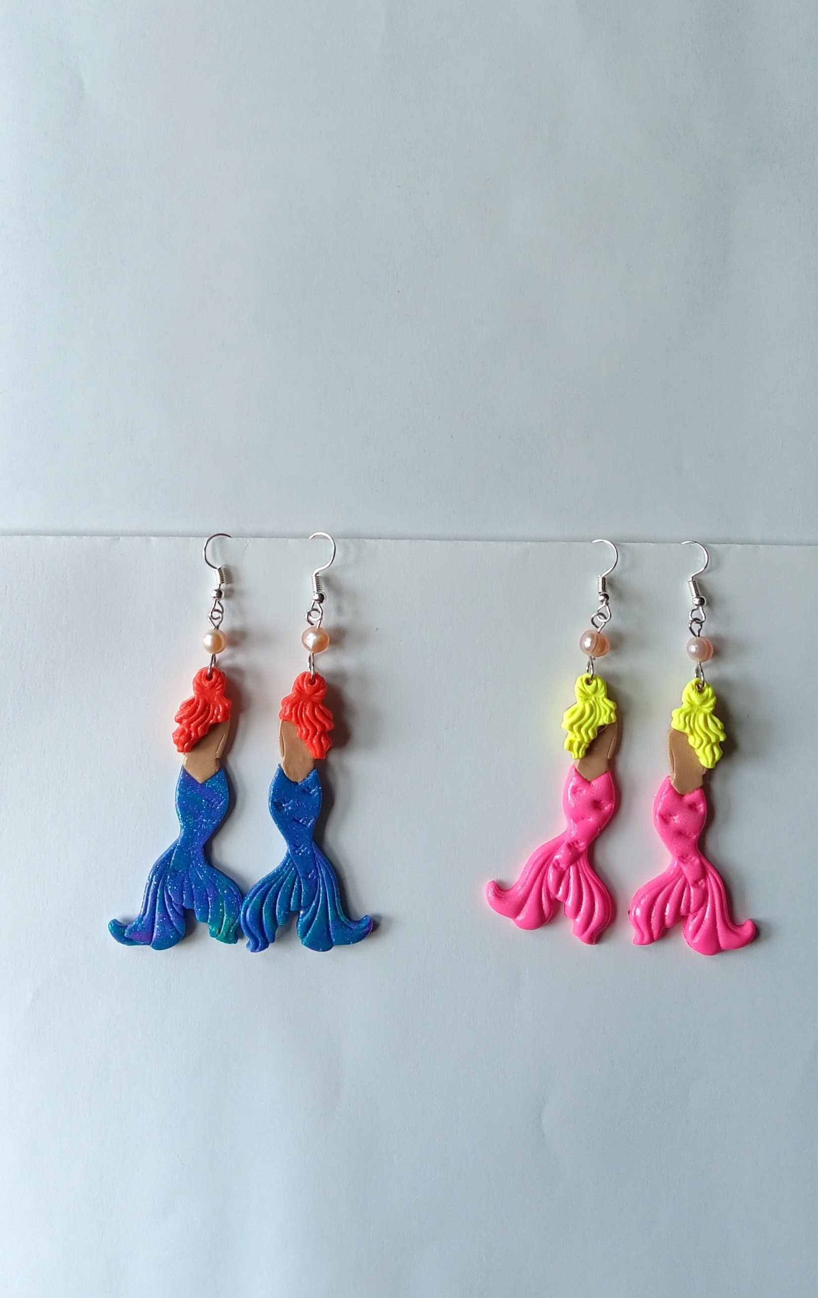 Kawaii mermaid earrings / polymer clay mermaid fin earrings / kawaii ocean aquatic jewelry / clay shell mermaid earrings aqua pink