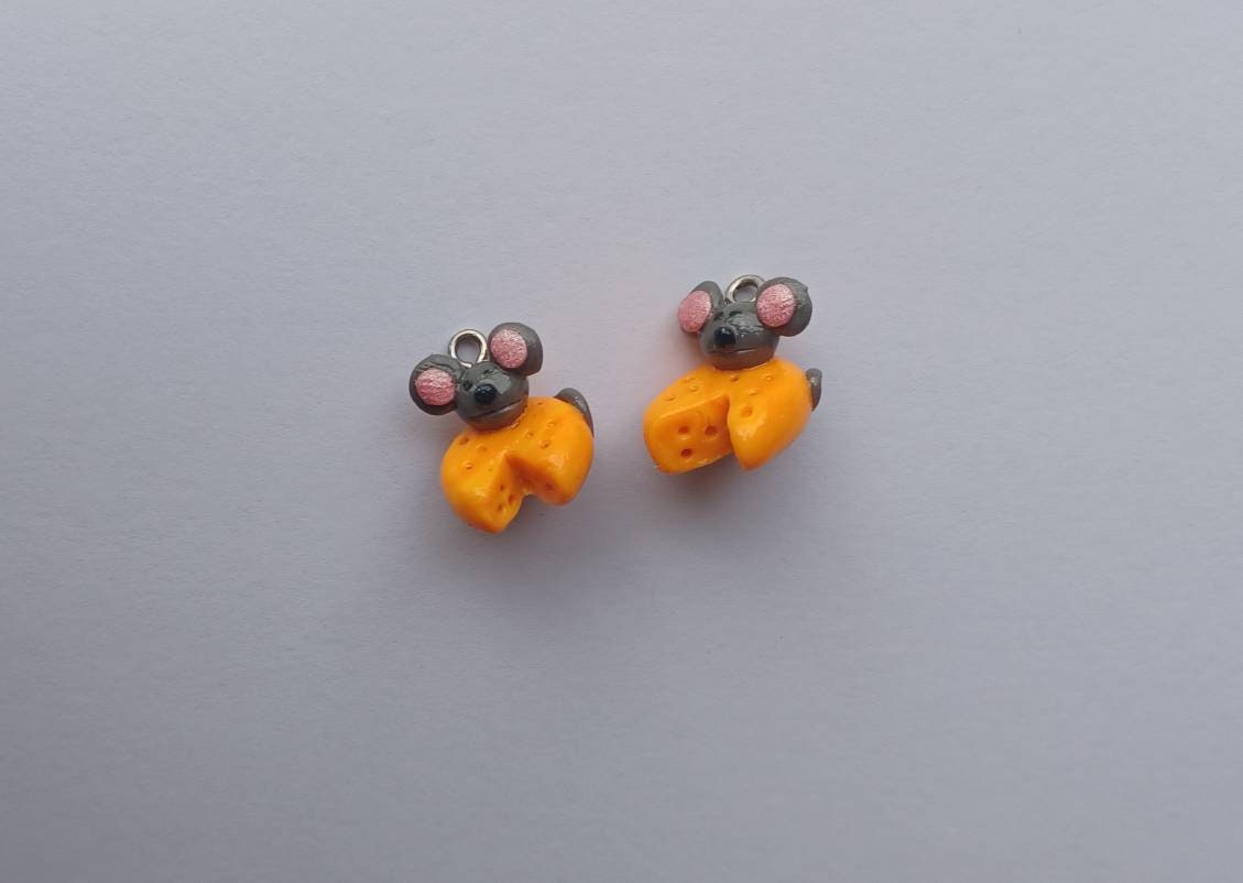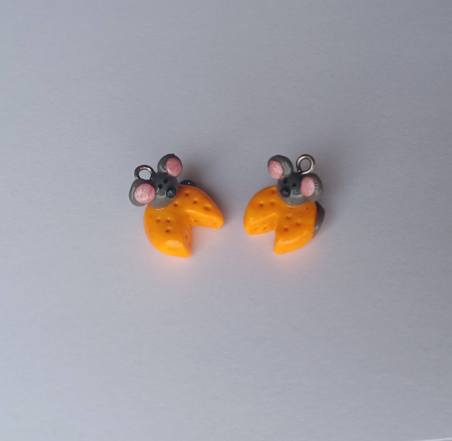 Kawaii mouse charms / polymer clay mouse in cheese charms / kawaii animal charms / kawaii mouse jewelry